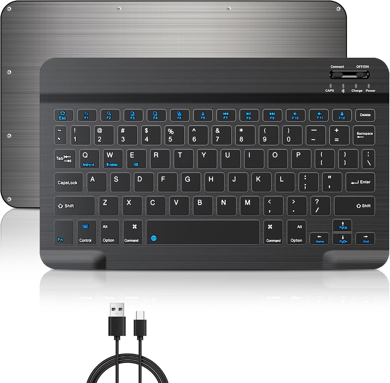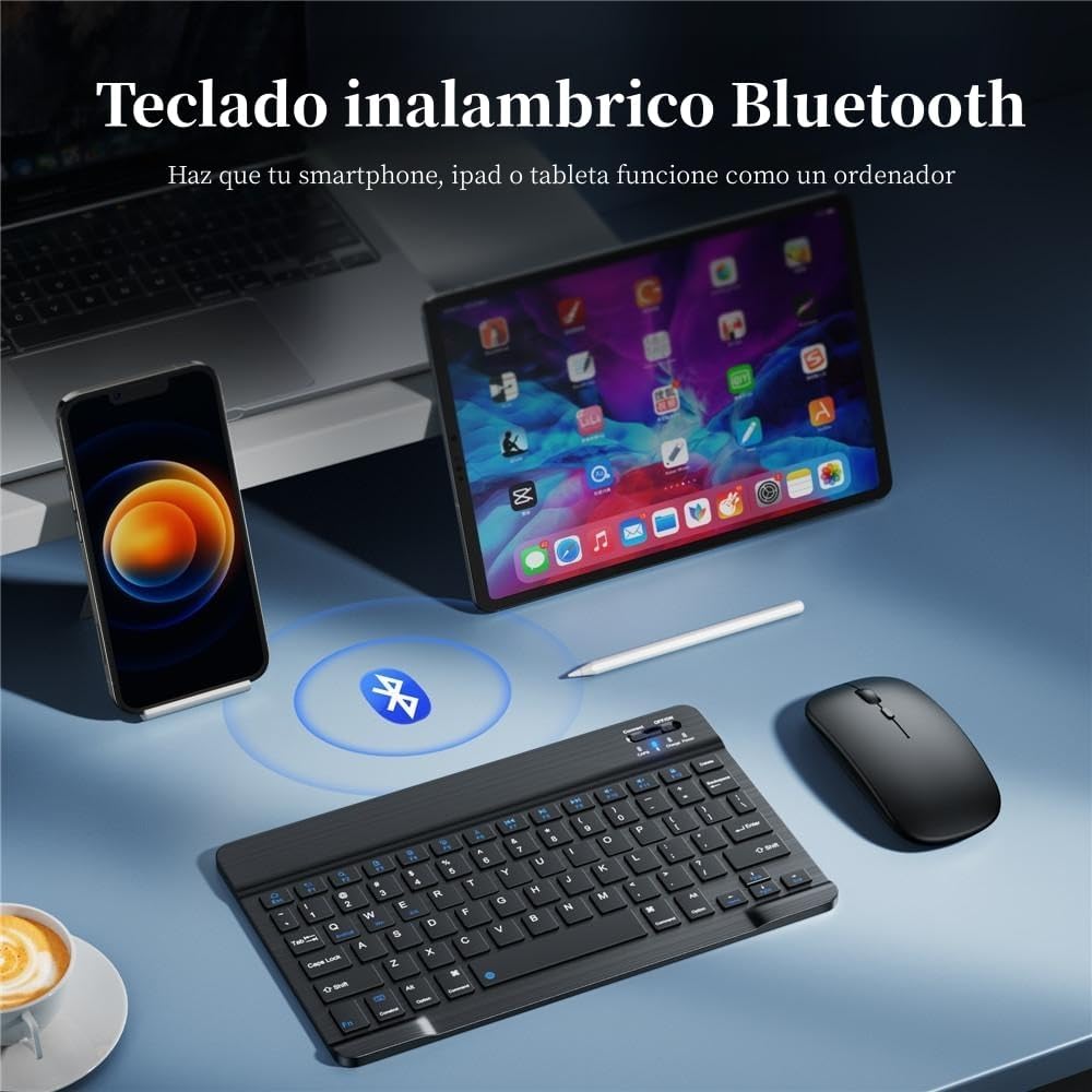Teclado Inalambrico, Mini Portátil Bluetooth Teclado Ultradelgado, Teclado Ergonómico Silencioso con Batería Recargable para iOS, Android y Windows