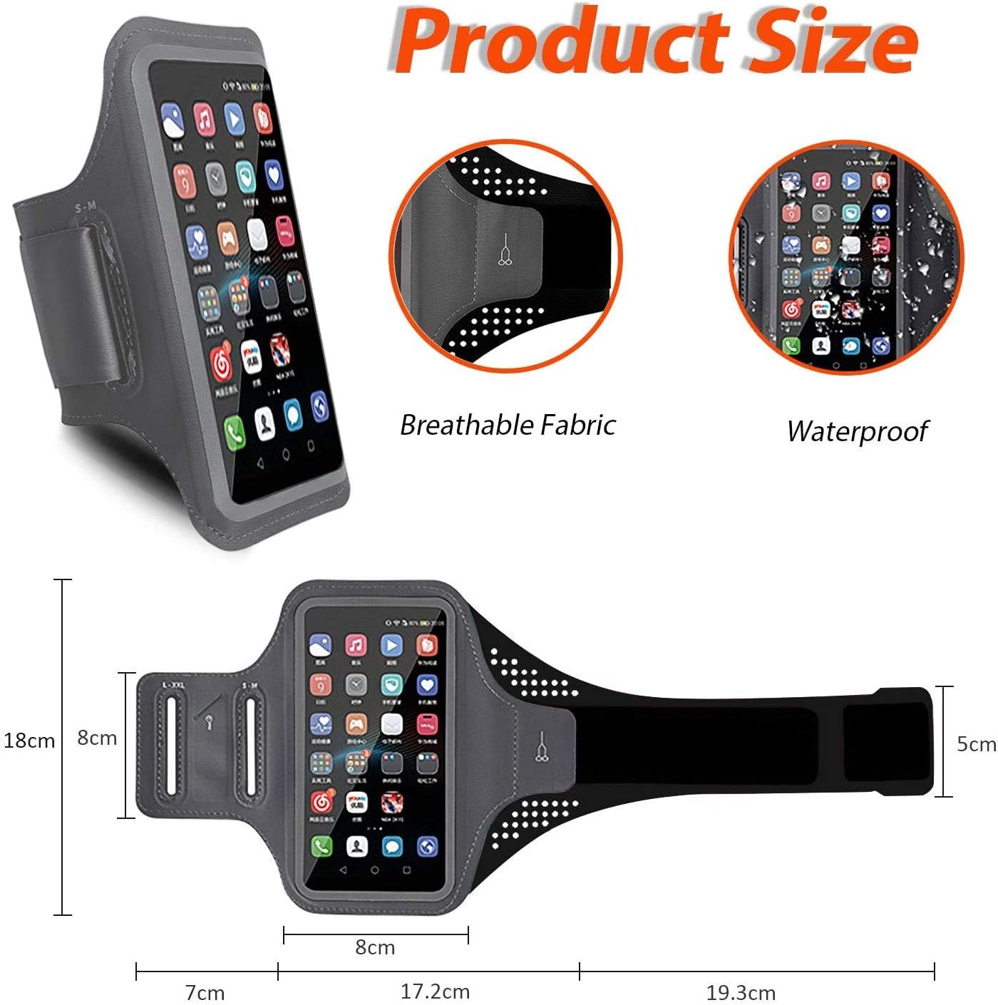 Funda para teléfono con brazalete deportivo,Correa Ajustable con Banda Reflectante,Brazalete del teléfono de la cubierta del caso,Senderismo,el cualquier teléfono que tiene una pantalla de hasta7.0 ''