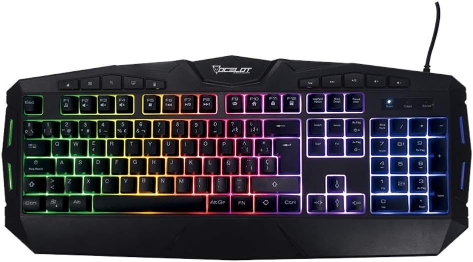 OCELOT GAMING Teclado Gamer Extendido OGEK03. Alámbrico, Funcionamiento de Membrana, Iluminación Tipo arcoíris, Teclas Multimedia. Fabricación en plástico