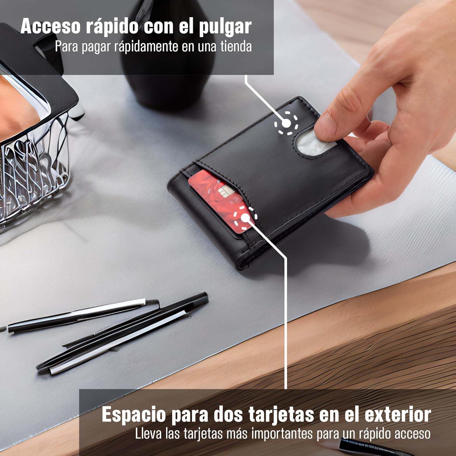 Tarjetero para Hombre – Cartera Clip Slim Negra, Diseño Elegante Ideal para Regalo o Uso Diario