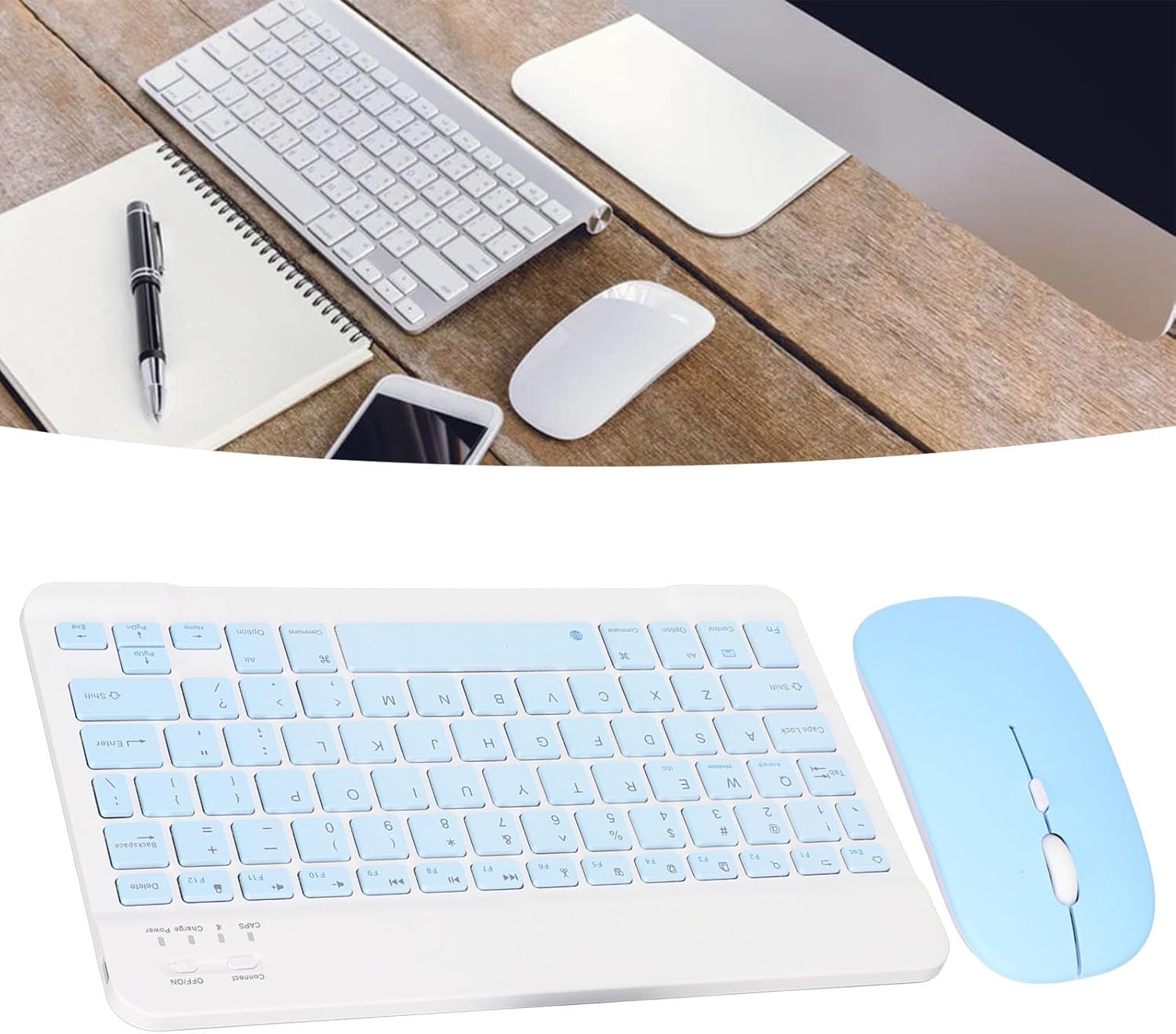 Yosoo Health Gear Teclado Bluetooth Ultra Delgado Recargable de 10 Pulgadas con Ratón dpi para Celular Portátil para Escritorio (Rosado)