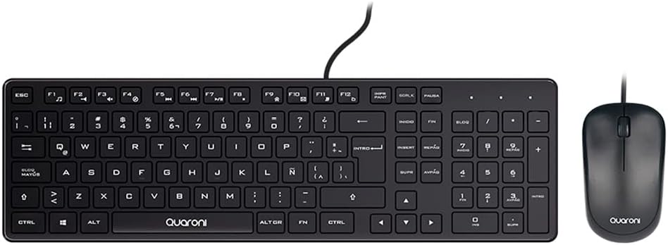 Quaroni Kit de Teclado y Mouse KAQ01,Conectividad alámbrica, tecnología de Mouse Optico 2 Botones + Scroll 1200 dpi, Teclado 104 Teclas