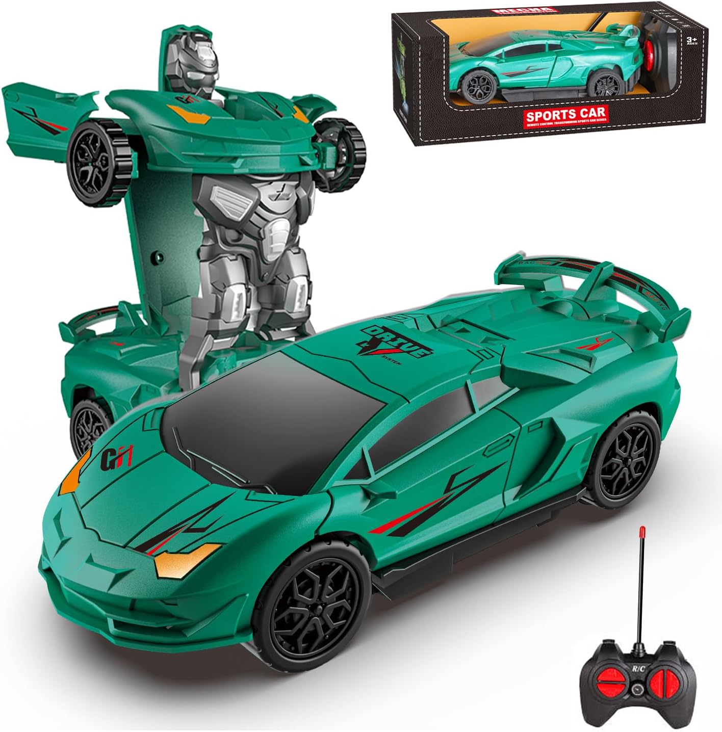 Coche de Control Remoto Transformable en Robot, Coches RC con Luces 2,4 GHz, Escala 1:18 Rotación de 360° Juguetes Robot, Regalos de Cumpleaños para Niños (Verde Oscuro)
