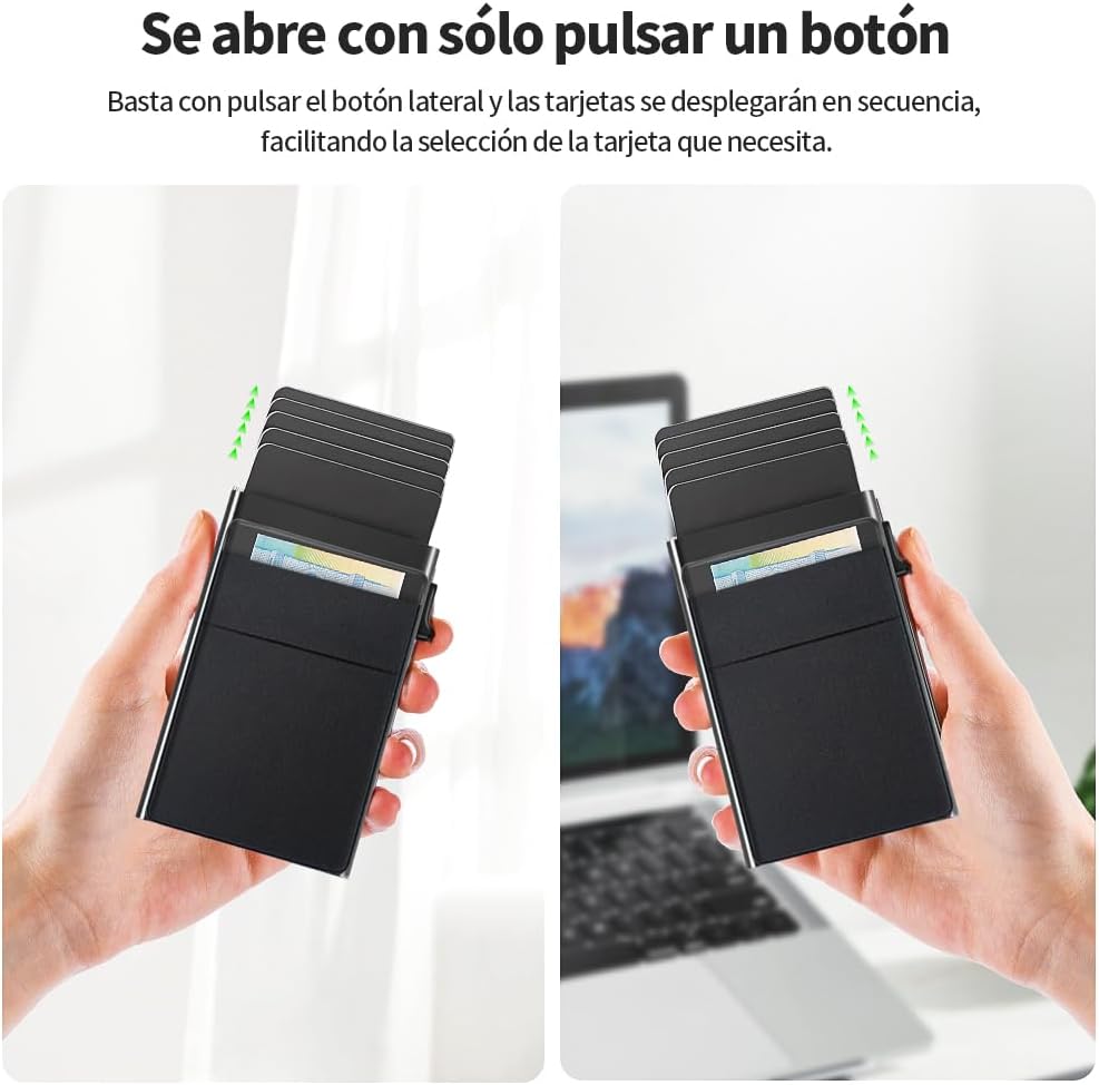 Tarjetero Antirrobo con Múltiples Ranuras para Tarjetas, Delgado Tarjetero Metálico con Protección RFID, con Capacidad para 6 Tarjetas Bancarias y Dinero en Efectivo (Negro)