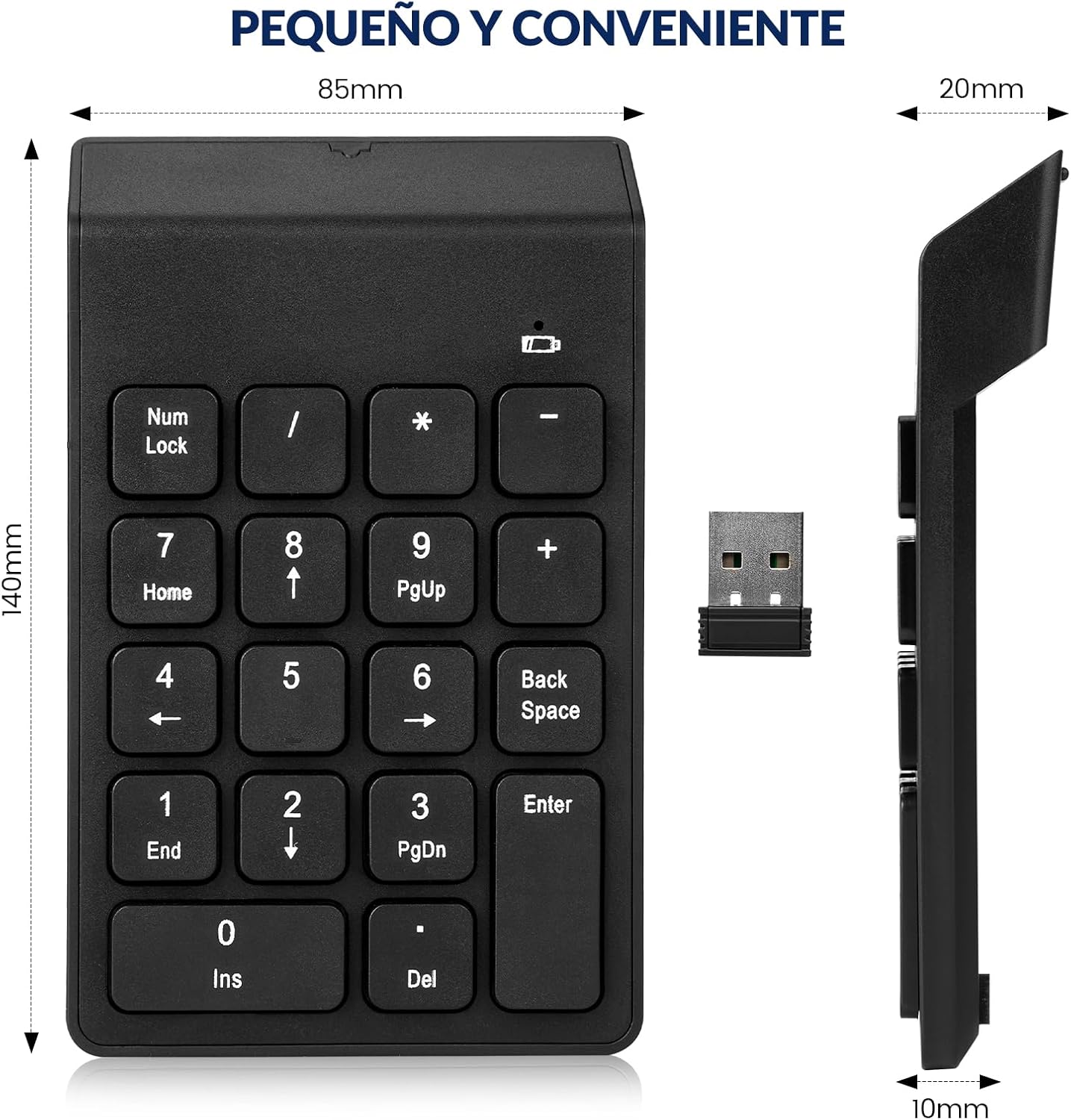 KCB Teclado Mumérico Inalámbrico,Teclado Numerico 18 Teclas,Fundamentos de Oficina y Contabilidad,con Receptor USB,para Windows(2003-11+),Linux,Chrome OS,Vista