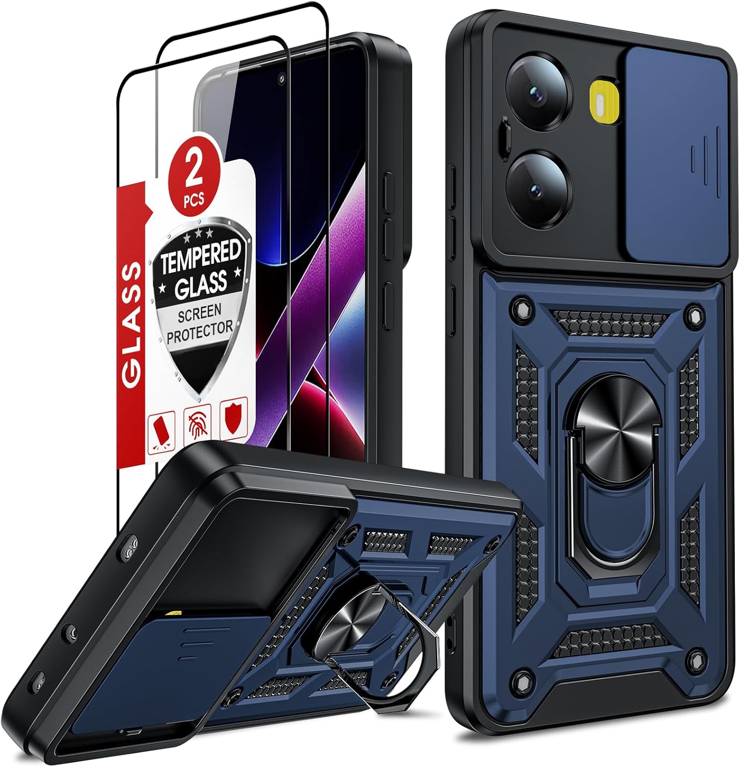 LeYi Funda para Xiaomi Poco X7 Pro 5G con [2-Unidades Cristal Vidrio Templado] Uso Rudo Carcasa Cubierta de cámara Deslizante Proteger Anillo Soporte Silicona TPU Armor Bumper Case, Negro