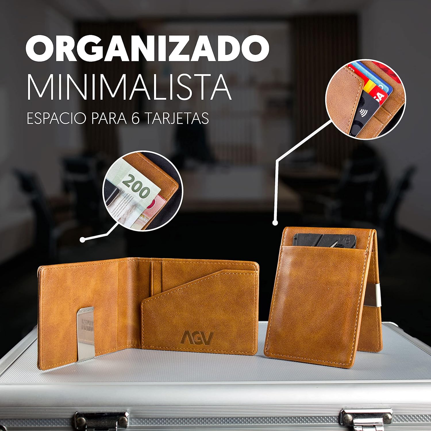Tarjetero para Hombre – Cartera Clip Tipo Billetera Color Café, Diseño Elegante y Minimalista
