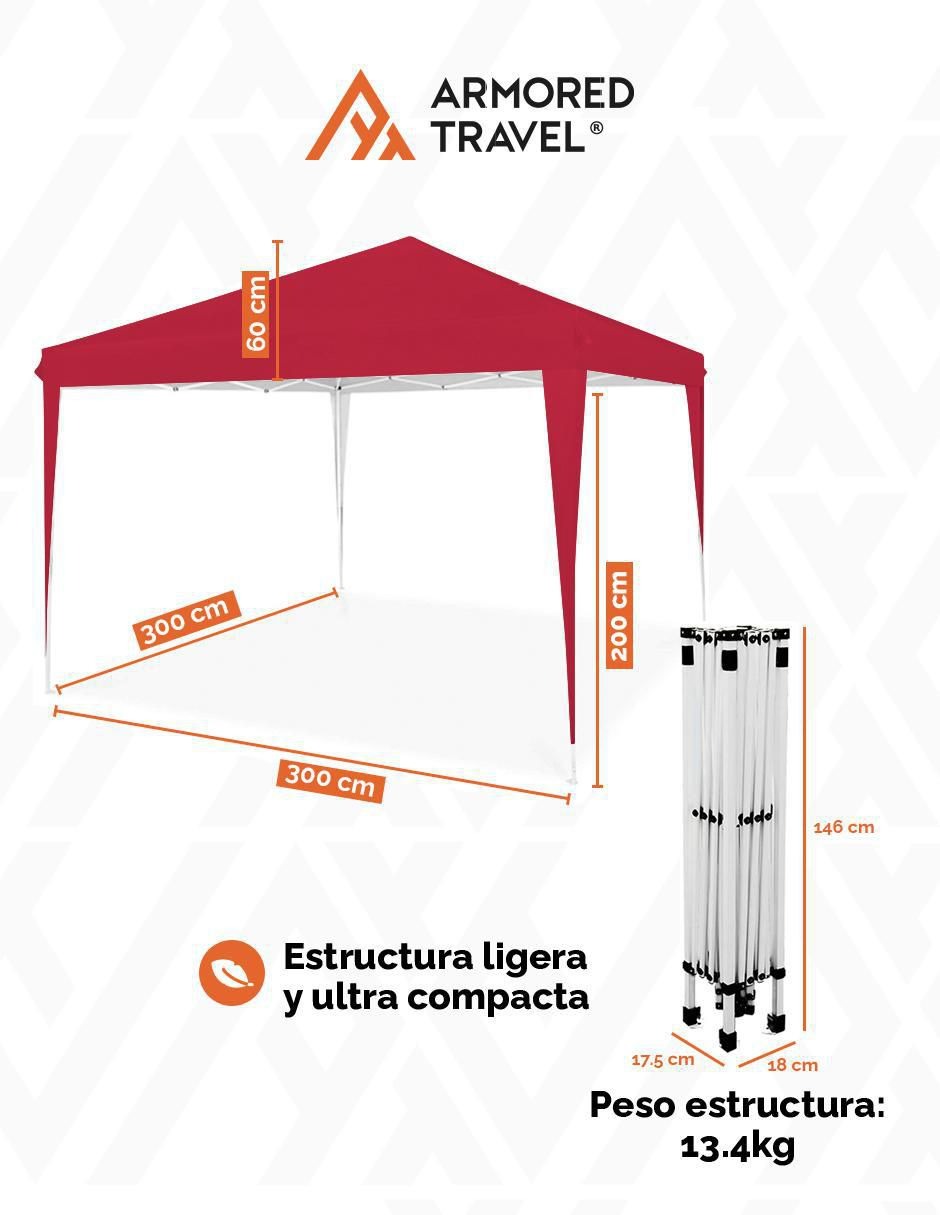 Carpa tipo toldo Armored Travel ancho 300 cm x largo 300 cm