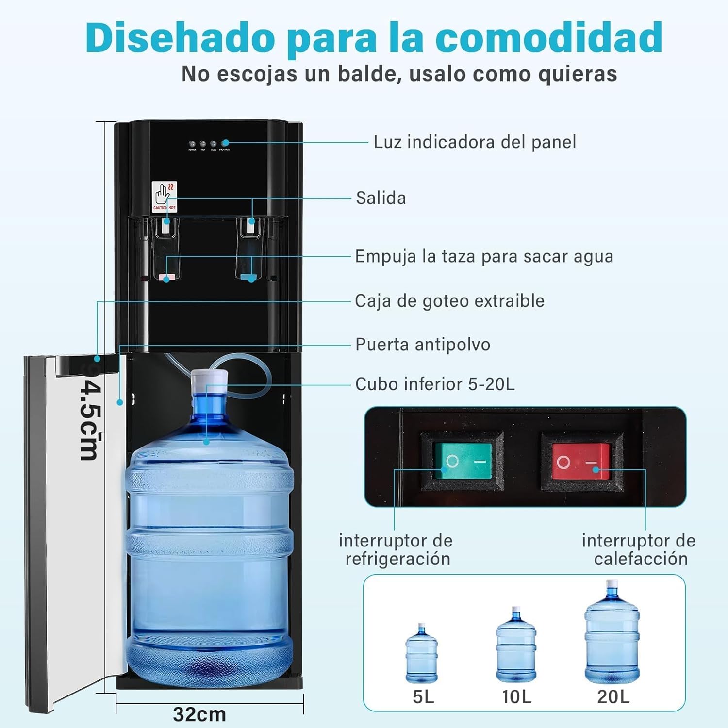 Ykioea Dispensador de Agua con Garrafón Oculto, Dispensador de Agua Fria y Caliente, Enfriador de Aguas, Bloqueo de Seguridad, para Hogar Oficina