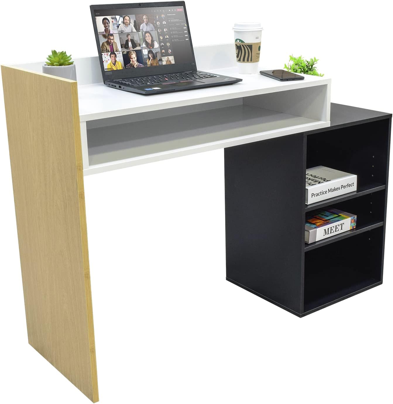 TOPLIVING Escritorio Diseño Moderno Minimalist, Mesa Ideal para Laptop, Oficina, Home Office, Superficie Amplia y Cómoda, Estructura en Madera Resistente