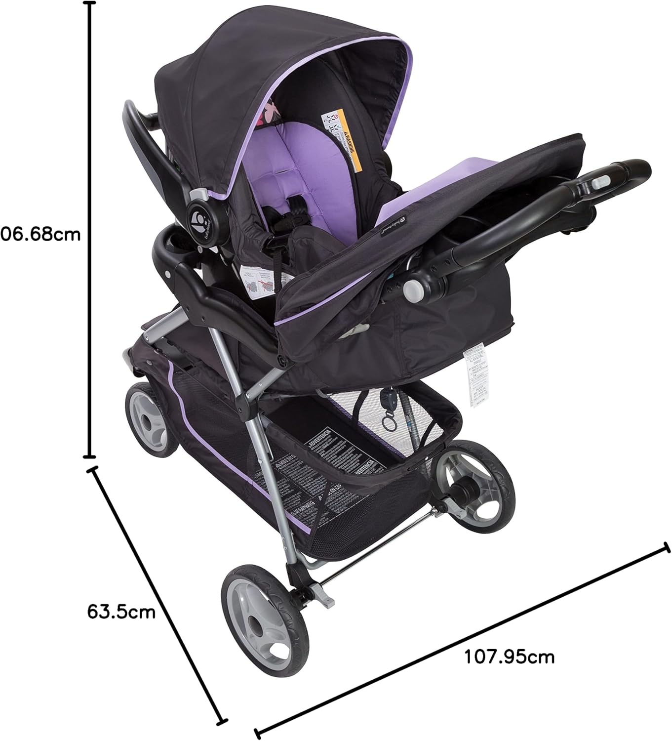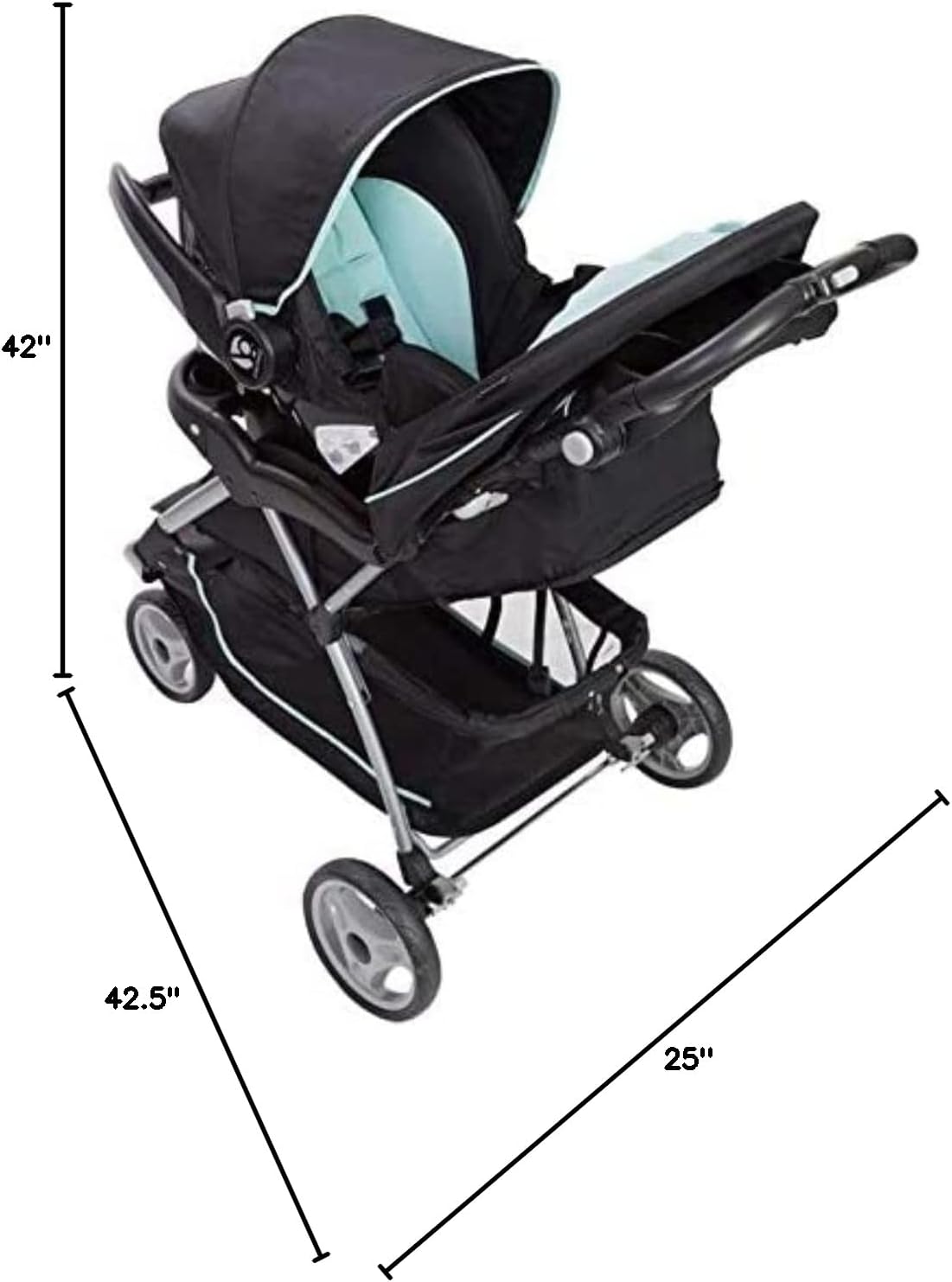 El sistema de viaje Baby Trend EZ Ride 35 es la solución perfecta para los nuevos padres. Este juego incluye el cochecito EZ Ride y el nuevo asiento de coche infantil Ally 35. Tanto el cochecito como el asiento de coche para bebés cuentan con arneses de seguridad de 5 puntos para una máxima seguridad y protección. El sistema de viaje proporciona comodidad y seguridad para su hijo y comodidad para usted. El cochecito cuenta con un asiento acolchado con múltiples posiciones de reclinación, una bandeja cubierta para padres con 2 soportes profundos para vasos, un asa ajustable en altura y una ventana de mirada a boo en el dosel. El asiento de coche infantil orientado hacia atrás sostiene a los recién nacidos de 4 a 35 libras y está diseñado con alas laterales más altas y más profundas con espuma EPS para una protección óptima contra impactos laterales. La base se instala con clips de pestillo o un cinturón de seguridad.