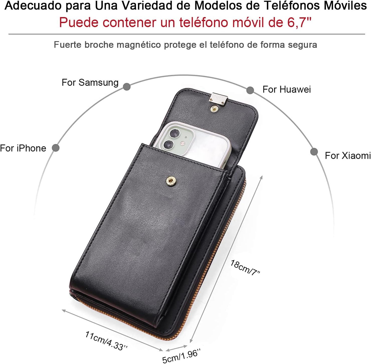 - 👏【Tamaño Perfecto】 19cm (L)*12cm (W)*5cm (H)/7.48inch(L)*4.72inch(W)*1.96inch(H). La bolsa de teléfono móvil de las mujeres con una gran pantalla de 6,7 pulgadas y por debajo, con correas de hombro ajustables de largo a 63 cm se puede utilizar como un cuerpo cruzado o un solo hombro adecuado para salir, viajar, trabajar, citas, etc