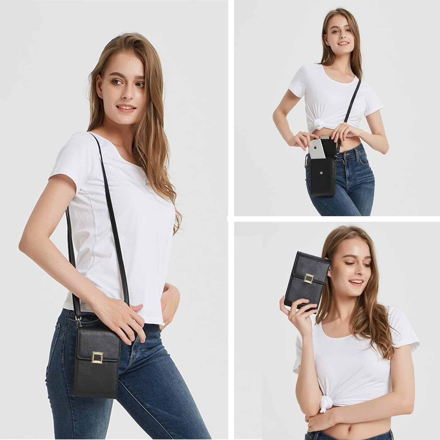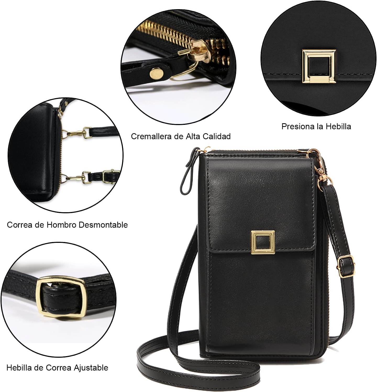 - 👍【Materiales Blandos】Nuestro diseño de bolsa de teléfono celular Crossbody con cuero sintético suave superior, es suave, resistente al agua, durable y agradable apariencia, fácil de limpiar.
