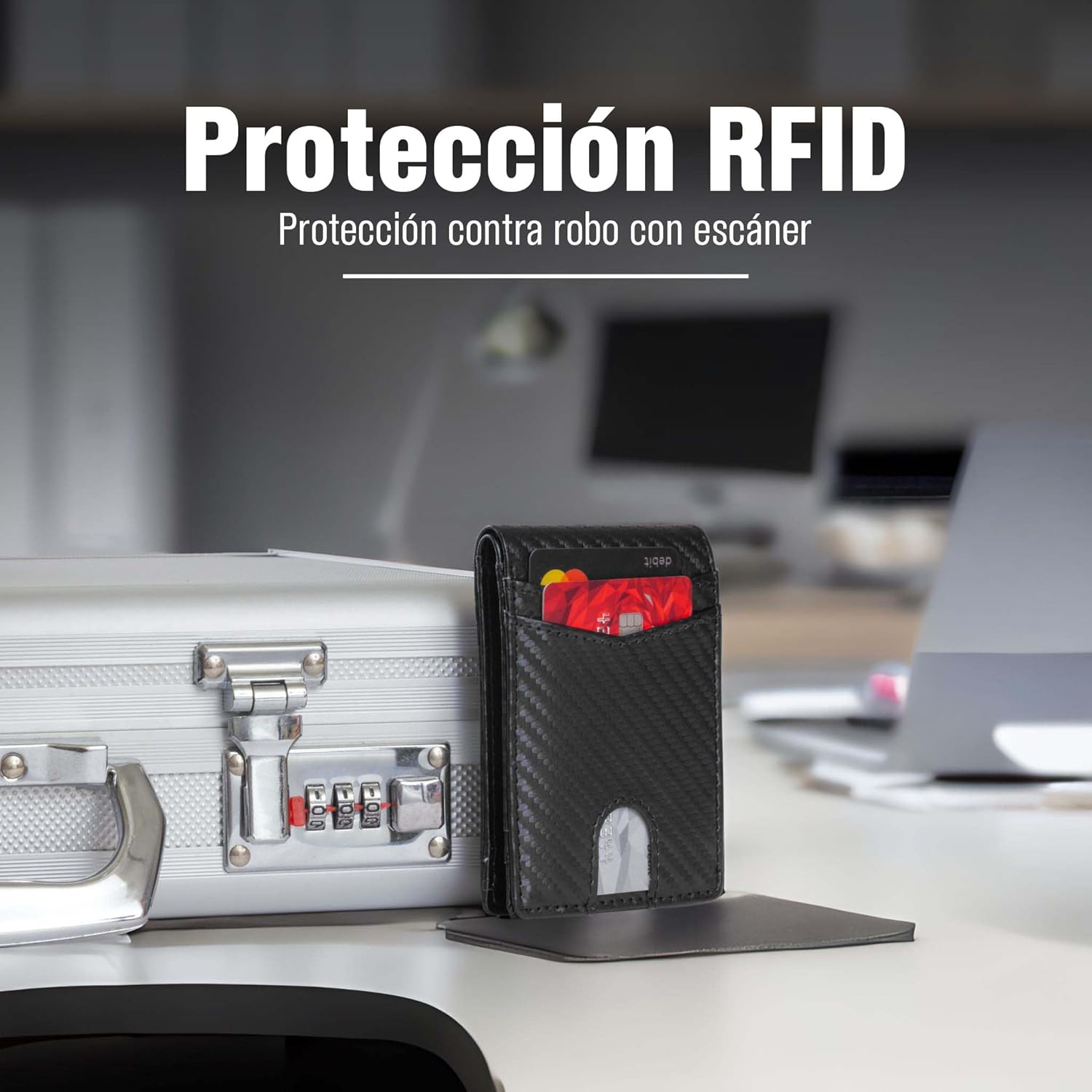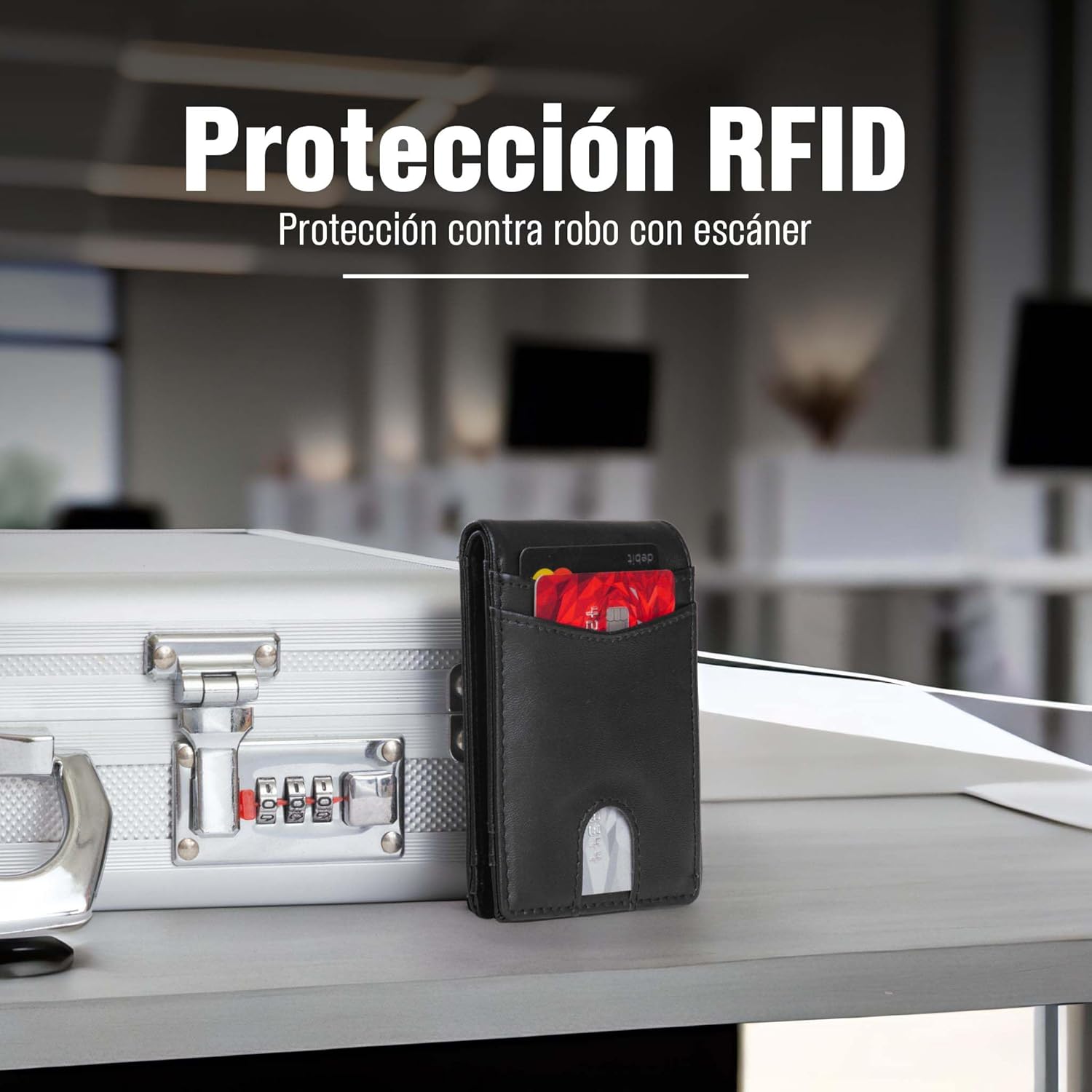 - PROTECCIÓN RFID: Mantente seguro contra los robos con escáneres de tarjetas. La cartera cuenta con protección RFID, la cual bloqueará cualquier tipo de señal que intente obtener información de tus tarjetas.