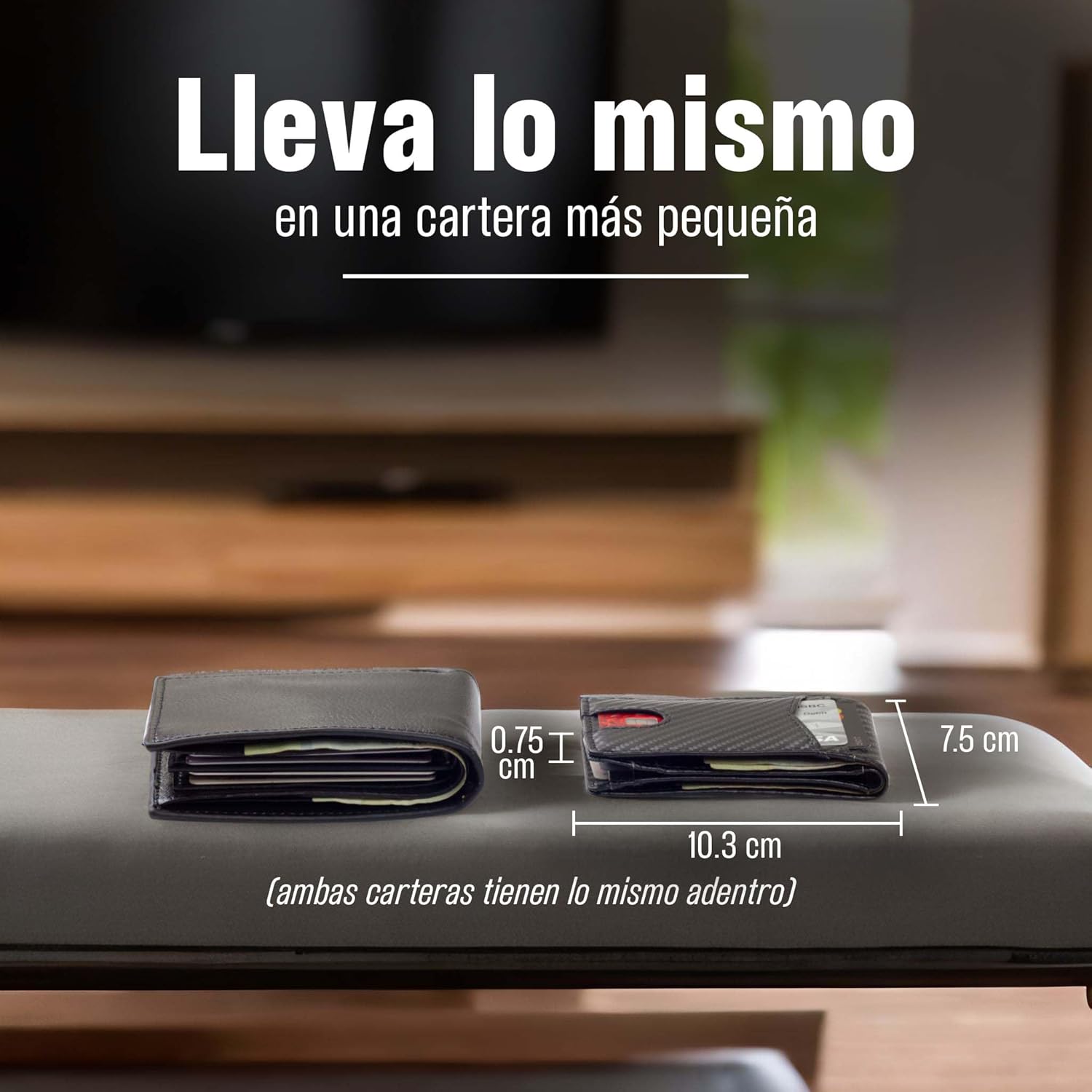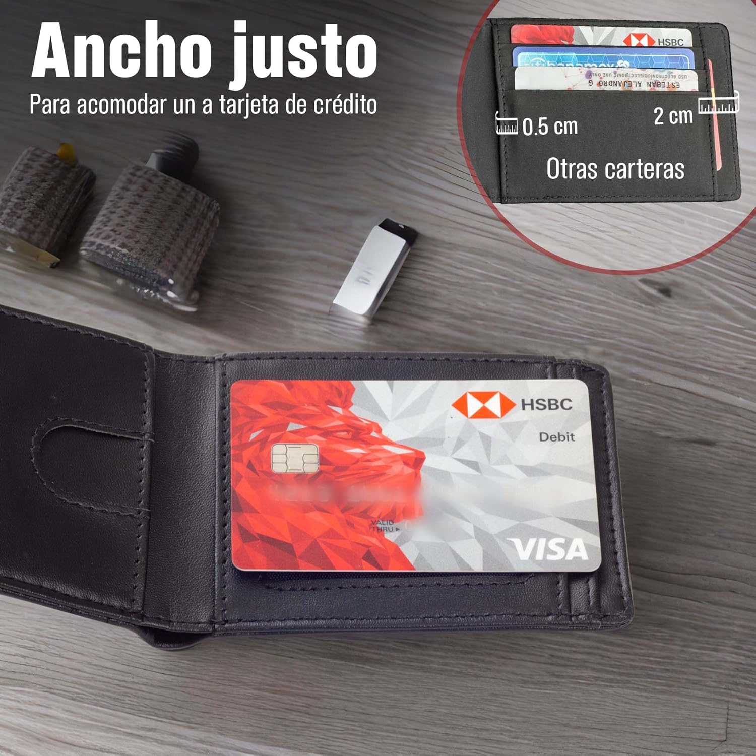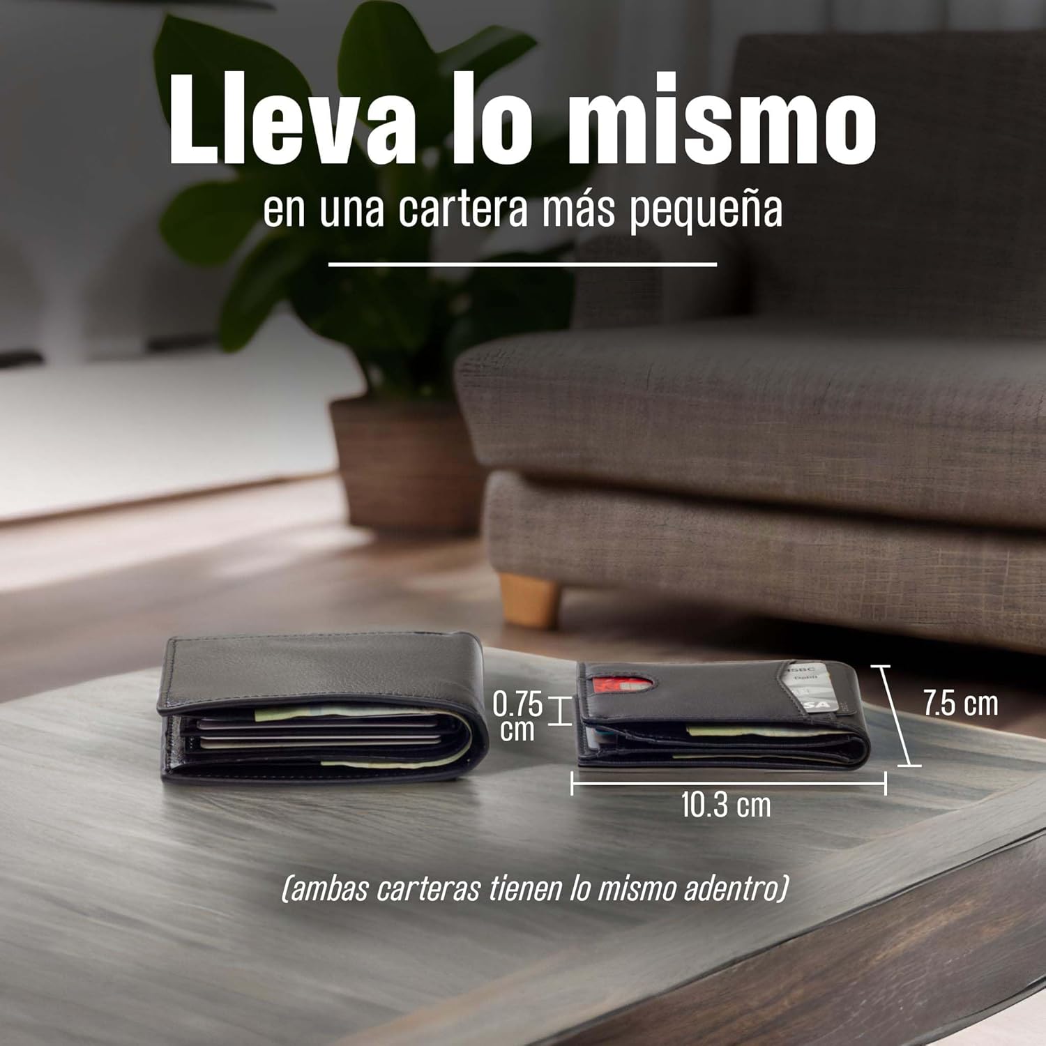- DISEÑO OPTIMIZADO: Las medidas de la cartera están hechas para ser lo más compactas posibles, y poder seguir almacenando todo lo que llevas en una cartera convencional. No hay espacio inactivo, o grosor innecesario.