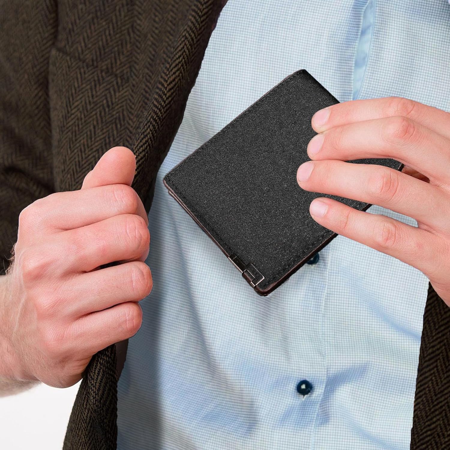 - Material Oxford Cloth: El uso de Oxford cloth, un tejido robusto y resistente, sugiere que la cartera para hombre está diseñada para ser duradera y práctica, a la vez que mantiene una apariencia elegante