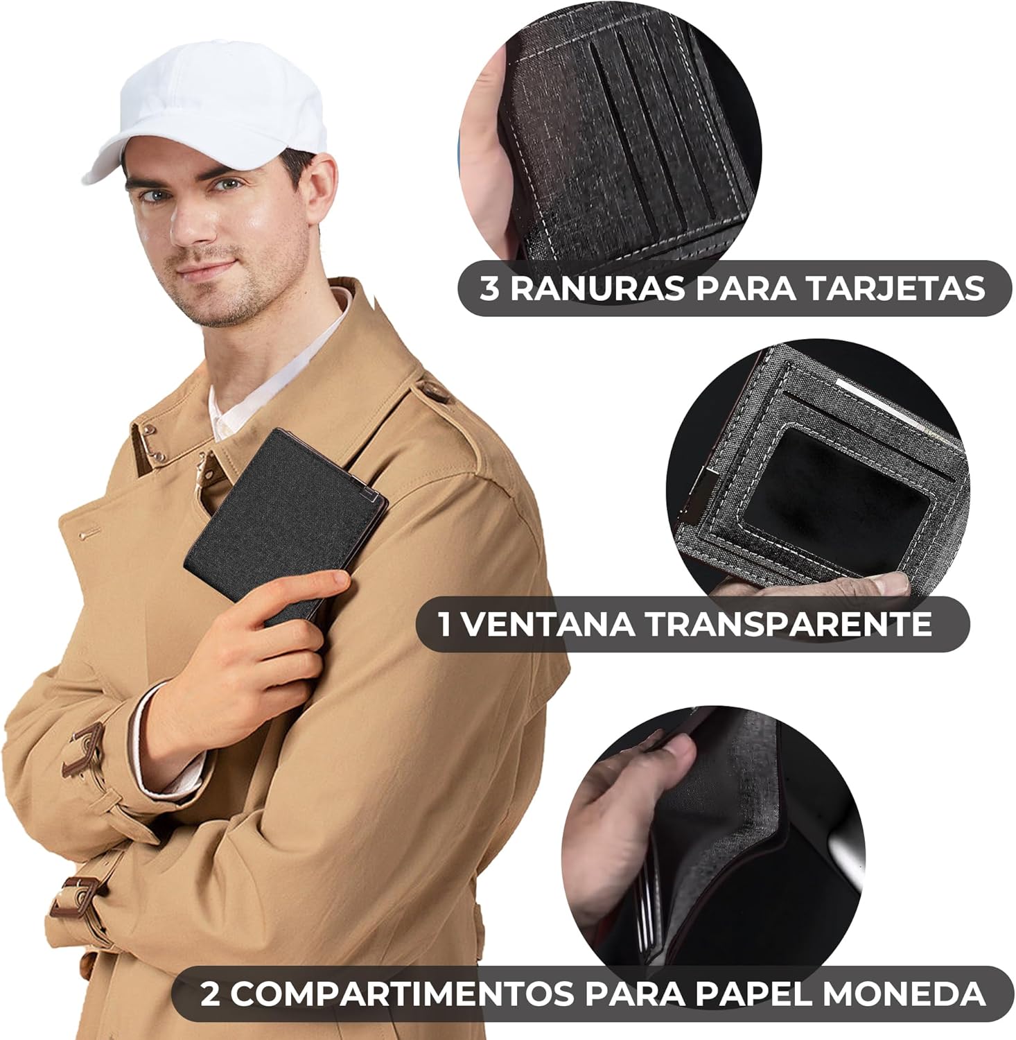 - Interior Organizado: La cartera minimalista hombre cuenta con 2 compartimentos, hay 3 ranuras para tarjetas y 1 espacio para una foto, facilitando el acceso y la organización de tarjetas de crédito, débito y fotografías