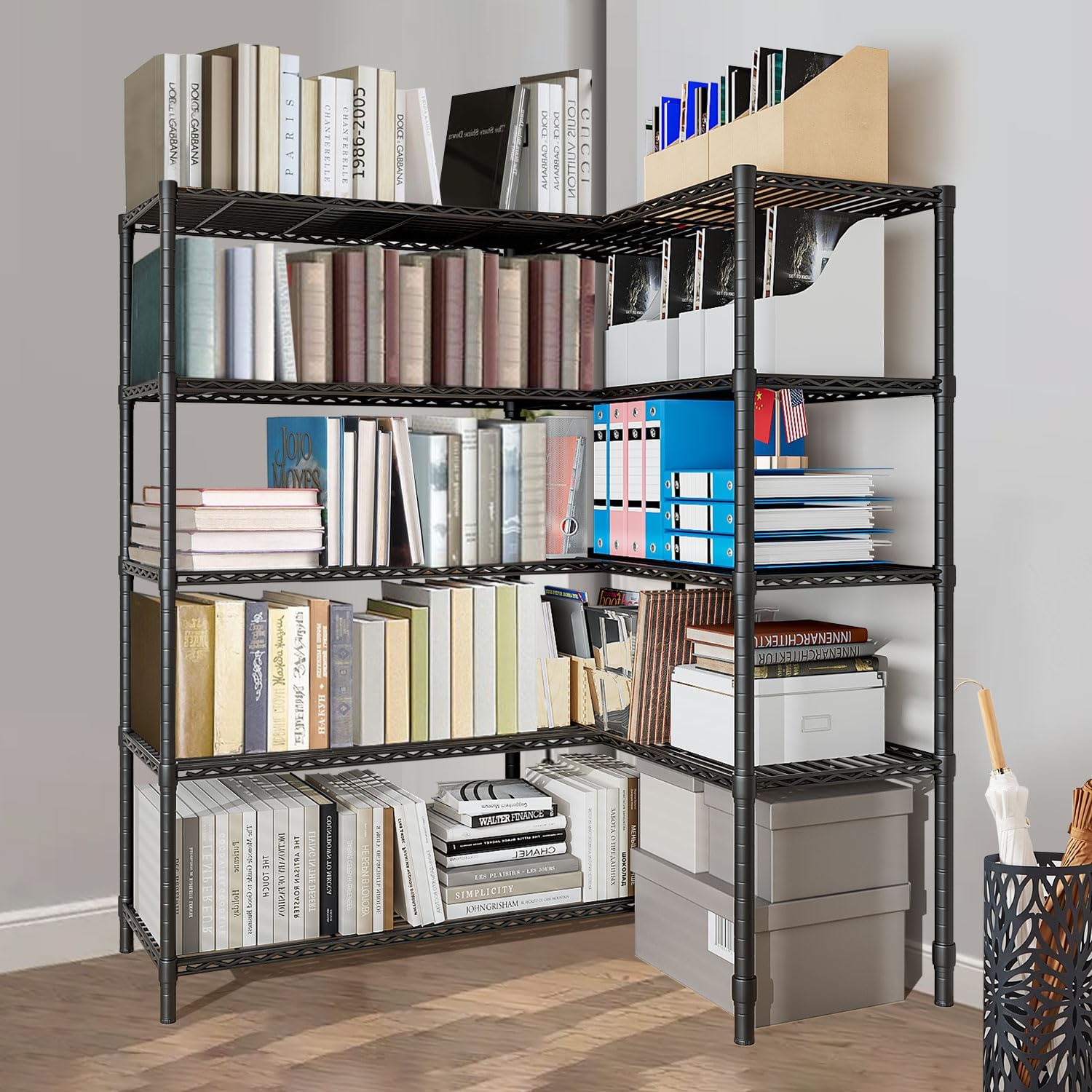 - 【Unidades de Estanterías】58" W x 59" H x 13.8" D,Uptyia Estante de Almacenamiento de 5 Niveles,Metálico y Ajustable,Gran Capacidad,Estante Organizador para Cocina,Garaje,Supermercado,Negro