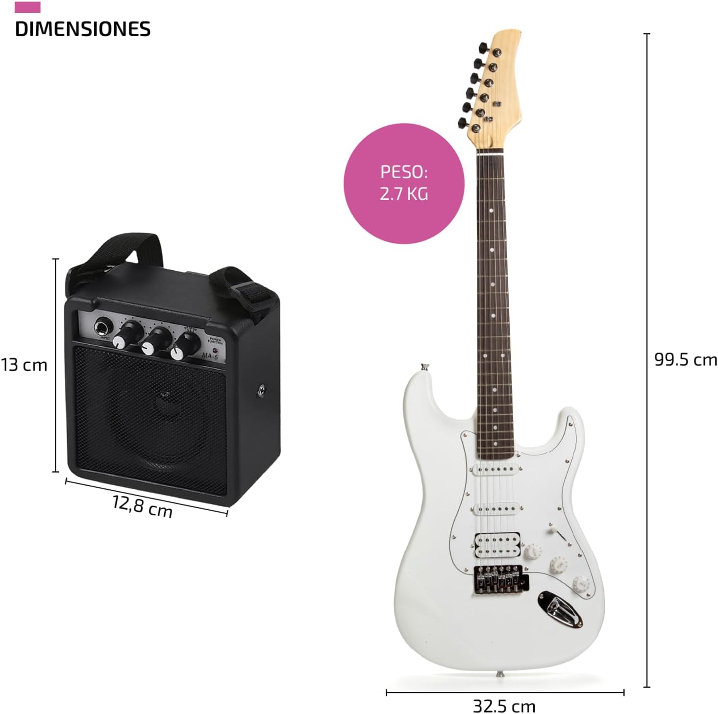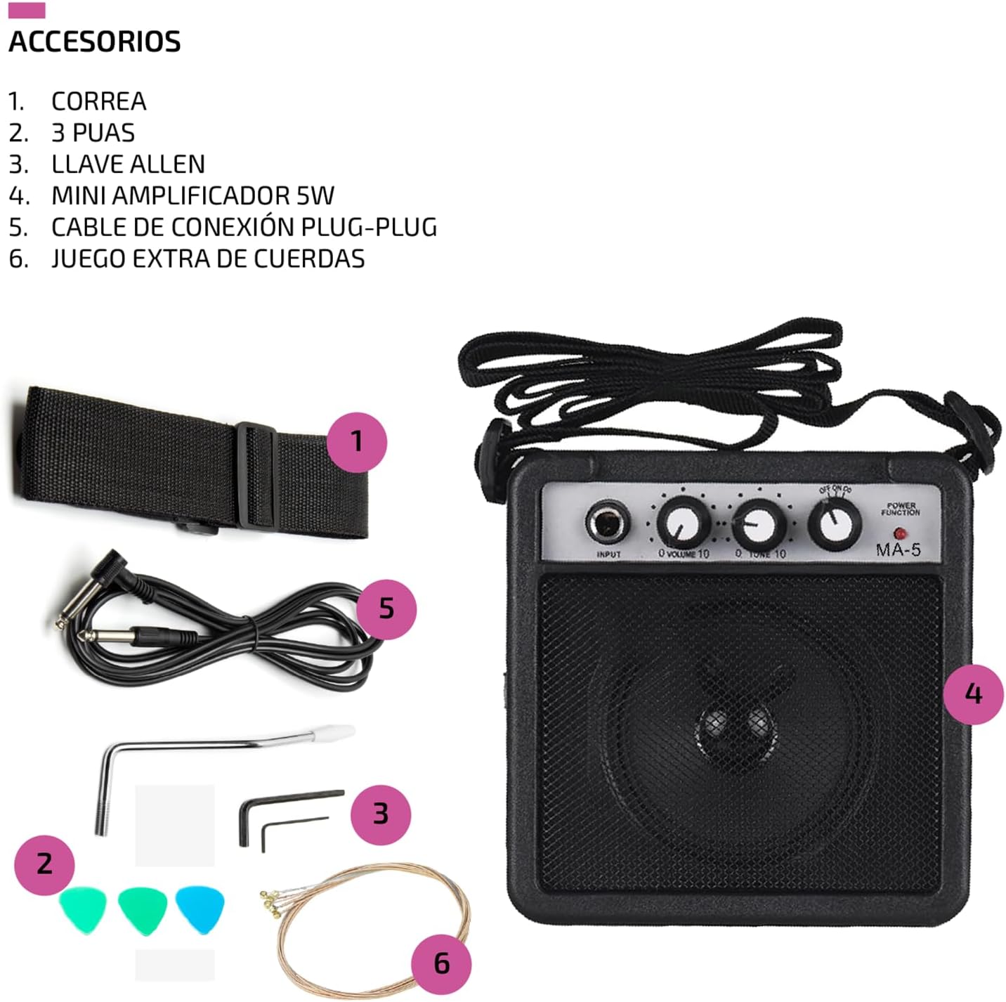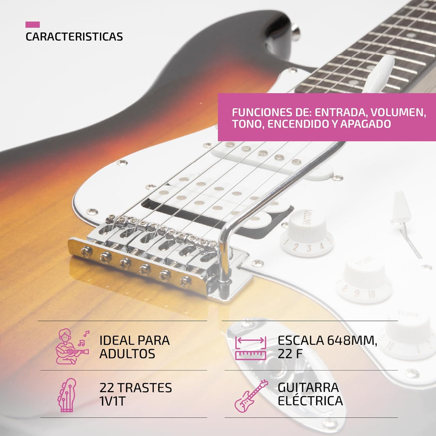 - Con 6 cuerdas y 22 trastes.