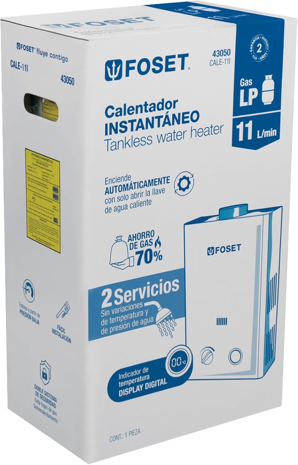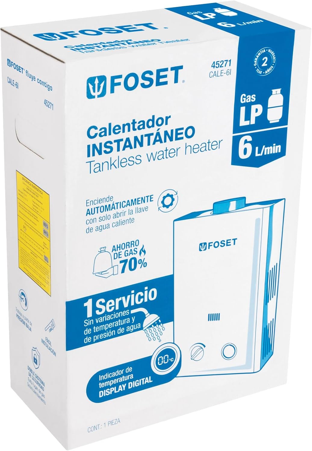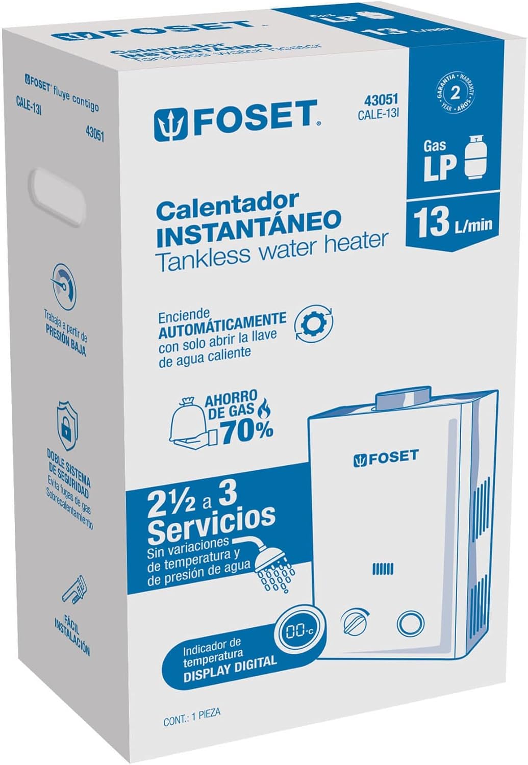 - Doble sistema de seguridad que evita fugas de gas y sobrecalentamiento (puede operar con calentador solar)