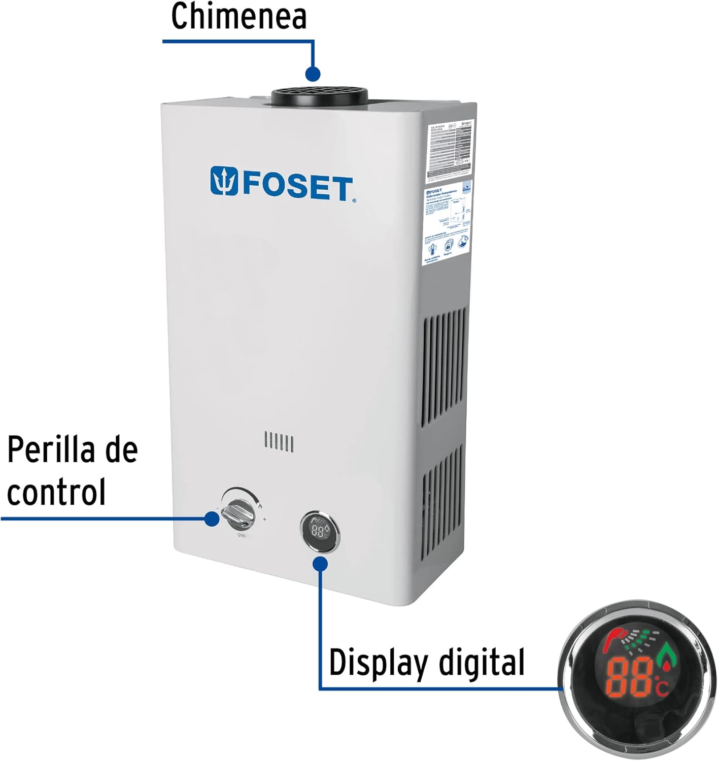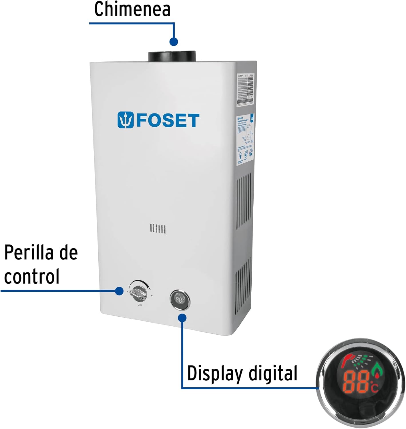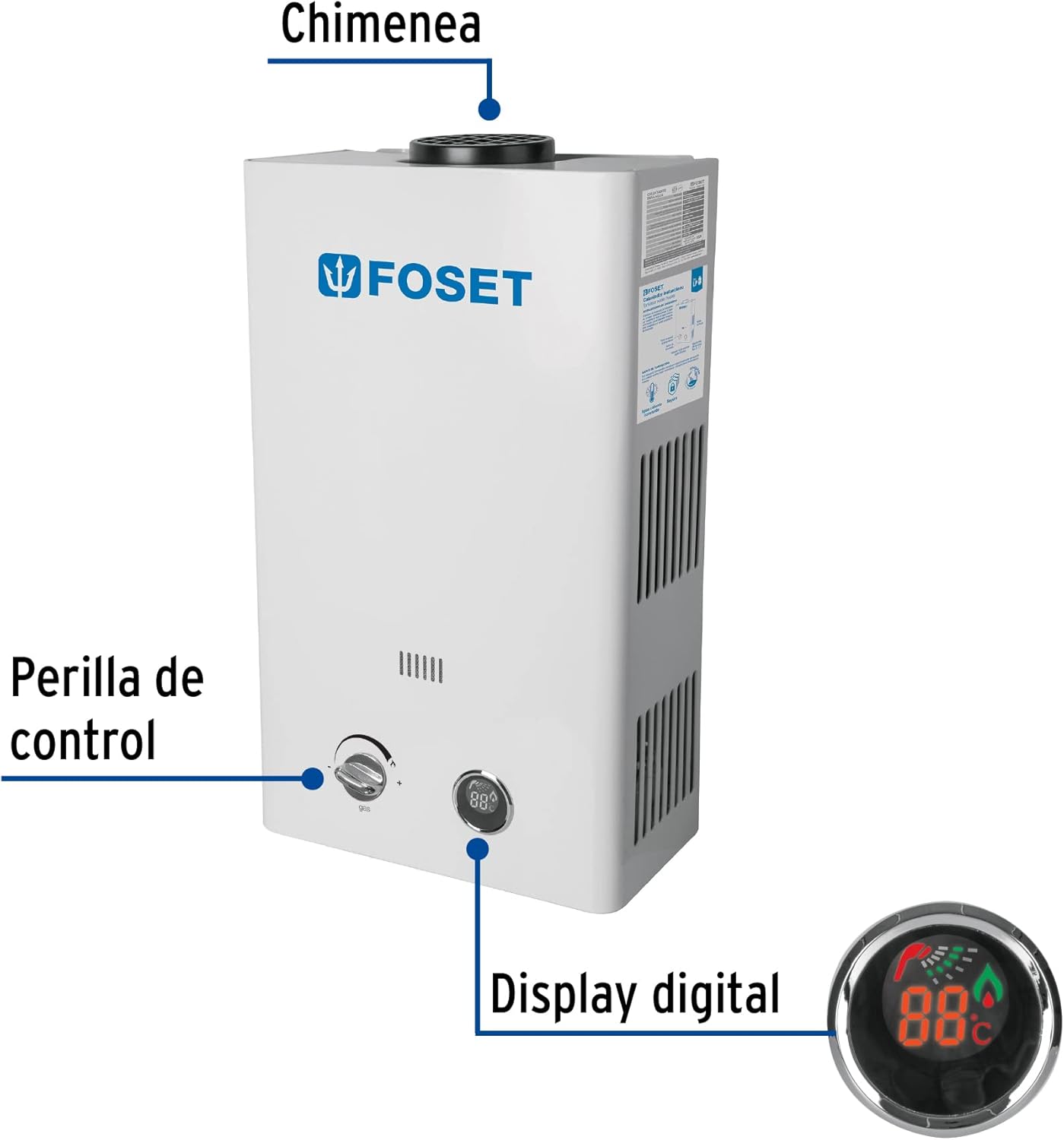- Doble sistema de seguridad que evita fugas de gas y sobrecalentamiento (puede operar con calentador solar)