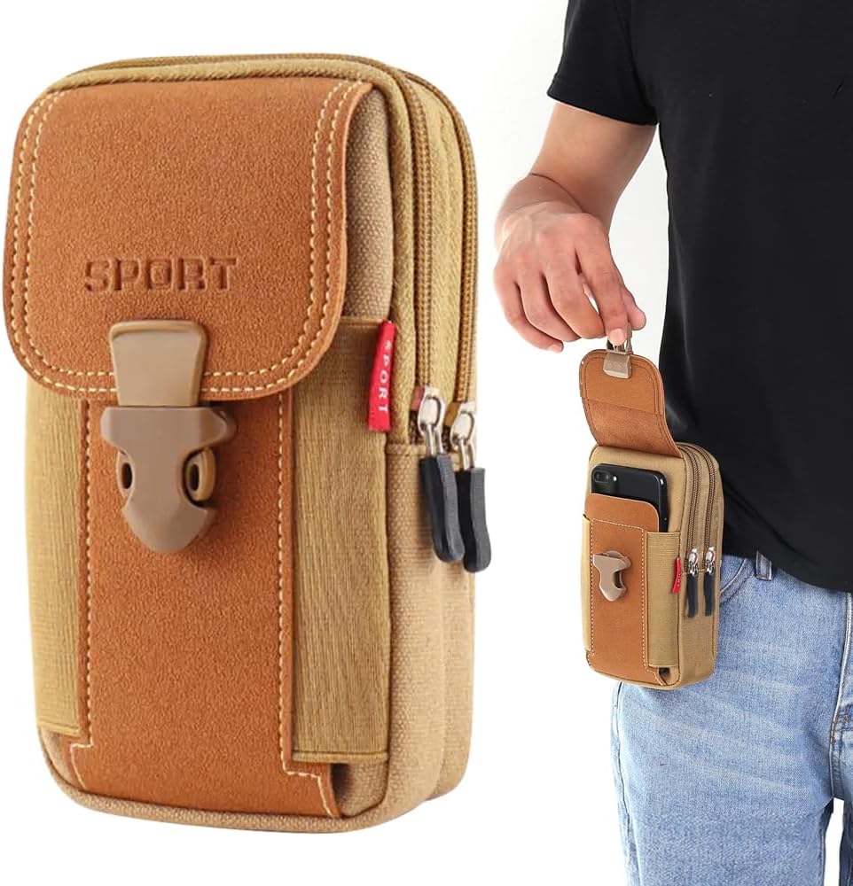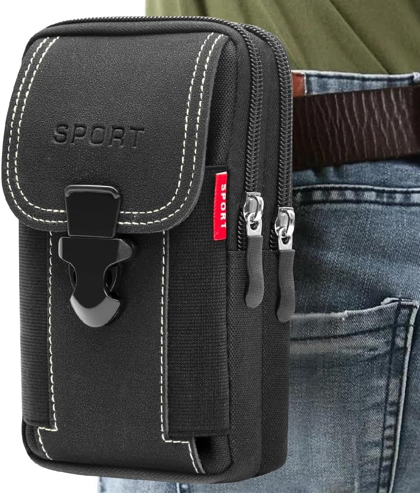 - 【Dos bolsillos para teléfono celular】 Esta funda para teléfono móvil tiene dos bolsillos con cremallera y un bolsillo con hebilla. El bolsillo principal puede contener teléfonos móviles, linternas pequeñas, llaves, cajas de tarjetas, auriculares, dinero en efectivo, monedas y otros artículos. Acerca del bolsillo frontal para funda de teléfono para cinturón de hombre. Puedes dejar un teléfono móvil de 18 cm y otros elementos que quieras poner.