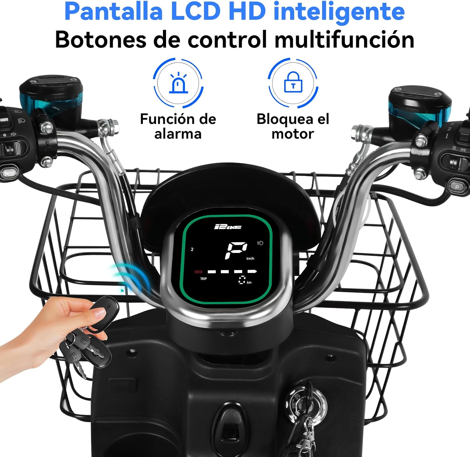 11. Pantalla de instrumentos:Marcha, nivel de batería, velocidad, kilometraje