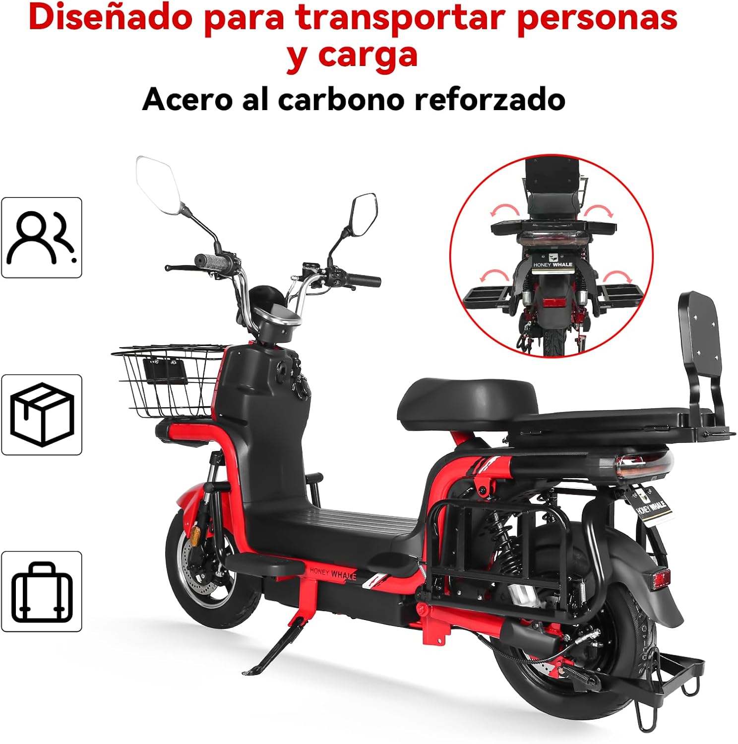 4. Asiento trasero desplegable para transportar cargas.