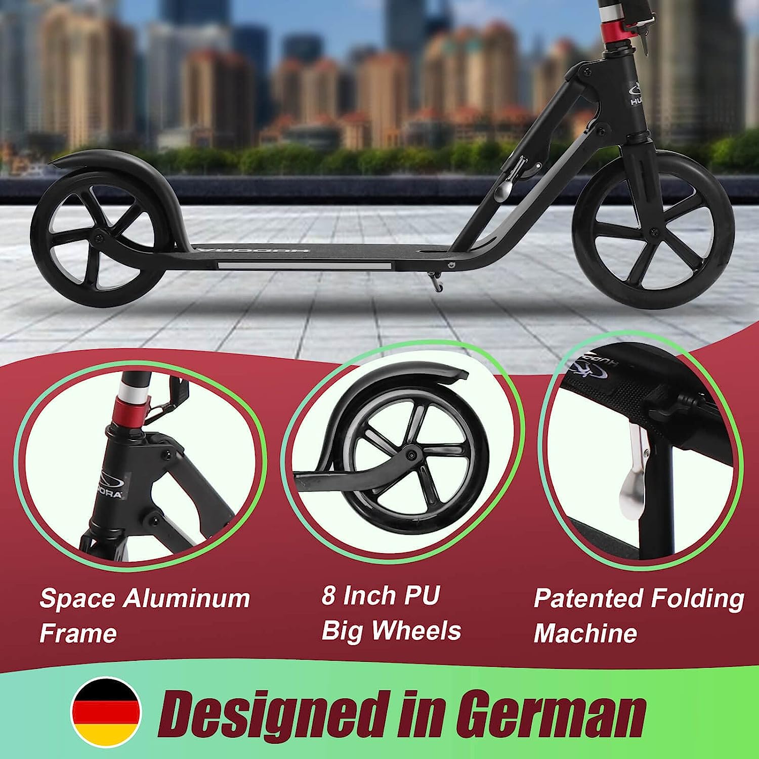 - Fácil de usar】Los scooters Hudora para adultos son ideales para viajar al trabajo o dar un paseo tranquilo con la familia. ¡Es una gran combinación de comodidad y diversión