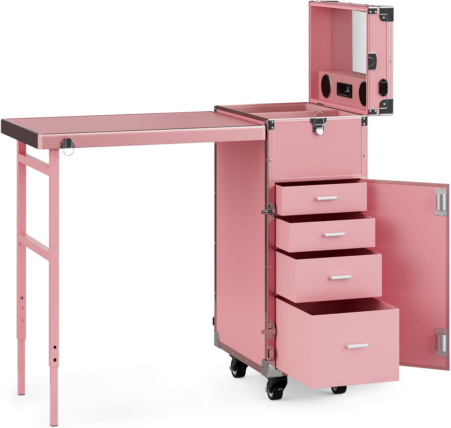 - Ambiente agradable: altavoz integrado que se puede conectar a través de tarjeta SD / puerto USB. La música dinámica añade un ambiente agradable cuando trabajas. También hay un puerto de conexión para cargar tu teléfono. Espejo HD ultra blanco a prueba de explosiones también conveniente para que los clientes revisen su maquillaje en cualquier momento