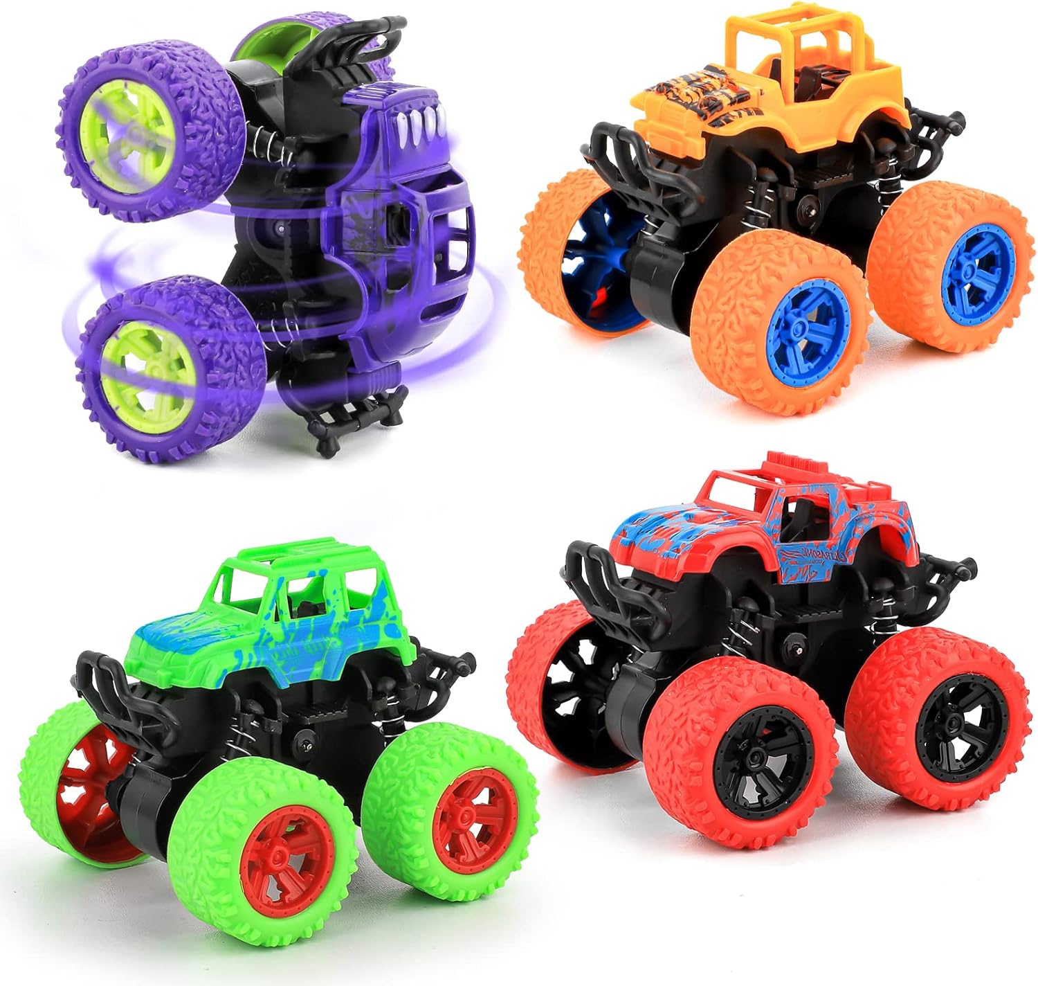 - Materiales de alta calidad: Paquete de 4 vehículos todoterreno Tuya con tracción en las 4 ruedas, fabricados con materiales ABS y metal de alta calidad respetuosos con el medio ambiente, seguros y duraderos.