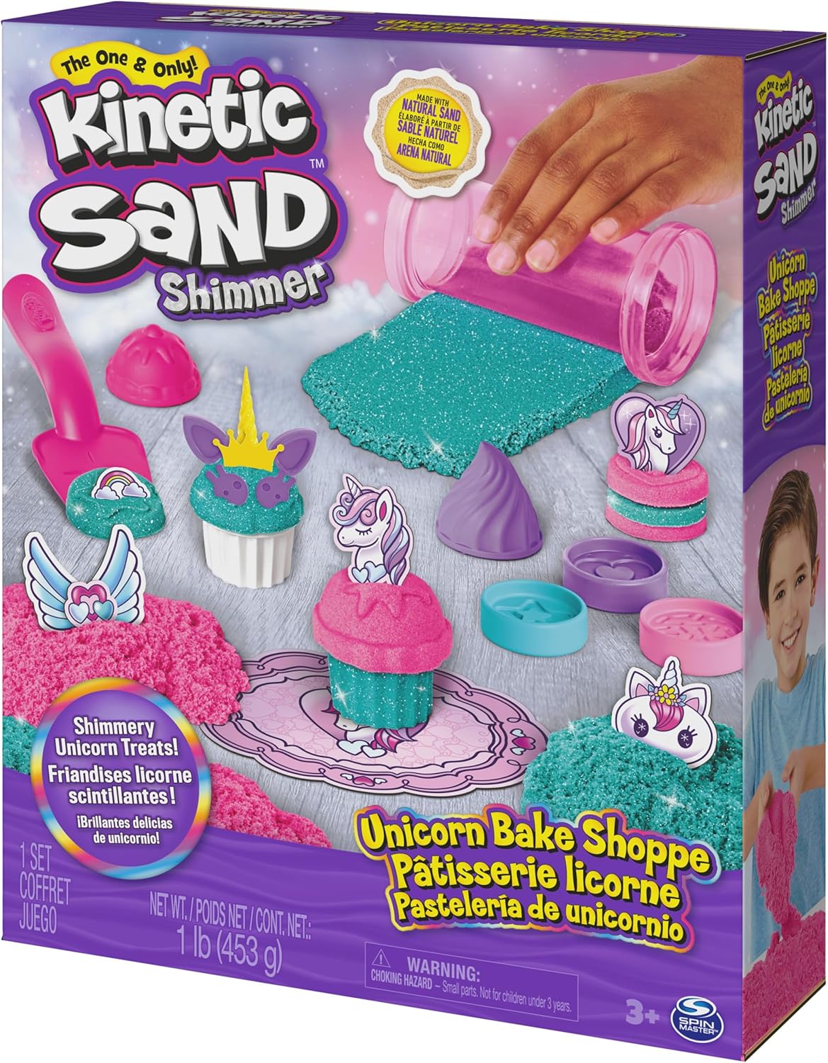 - TIENDA DE PASTELES DE UNICORNIO DE KINETIC SAND: Crea cupcakes y dulces de unicornio con tu propia tienda de pasteles de unicornio de Kinetic Sand. Con relucientes arenas de color turquesa y rosa neón, herramientas y accesorios temáticos de unicornio