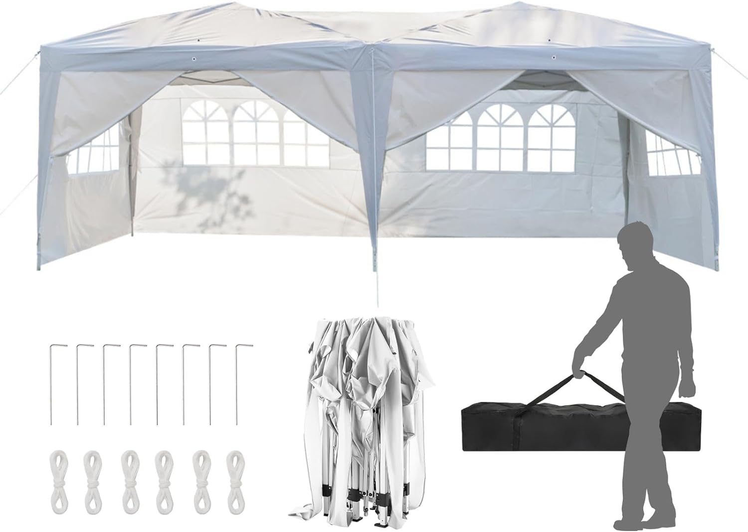 - 【Diámetro general】La tienda de campaña de fiesta al aire última intervensión de 3 m x 6 m) con faldas de pierna puede contener hasta 30 personas. 3 alturas para ajustar. Desde la parte superior de la tienda: 2,5 m/2,6 m/2,7 m