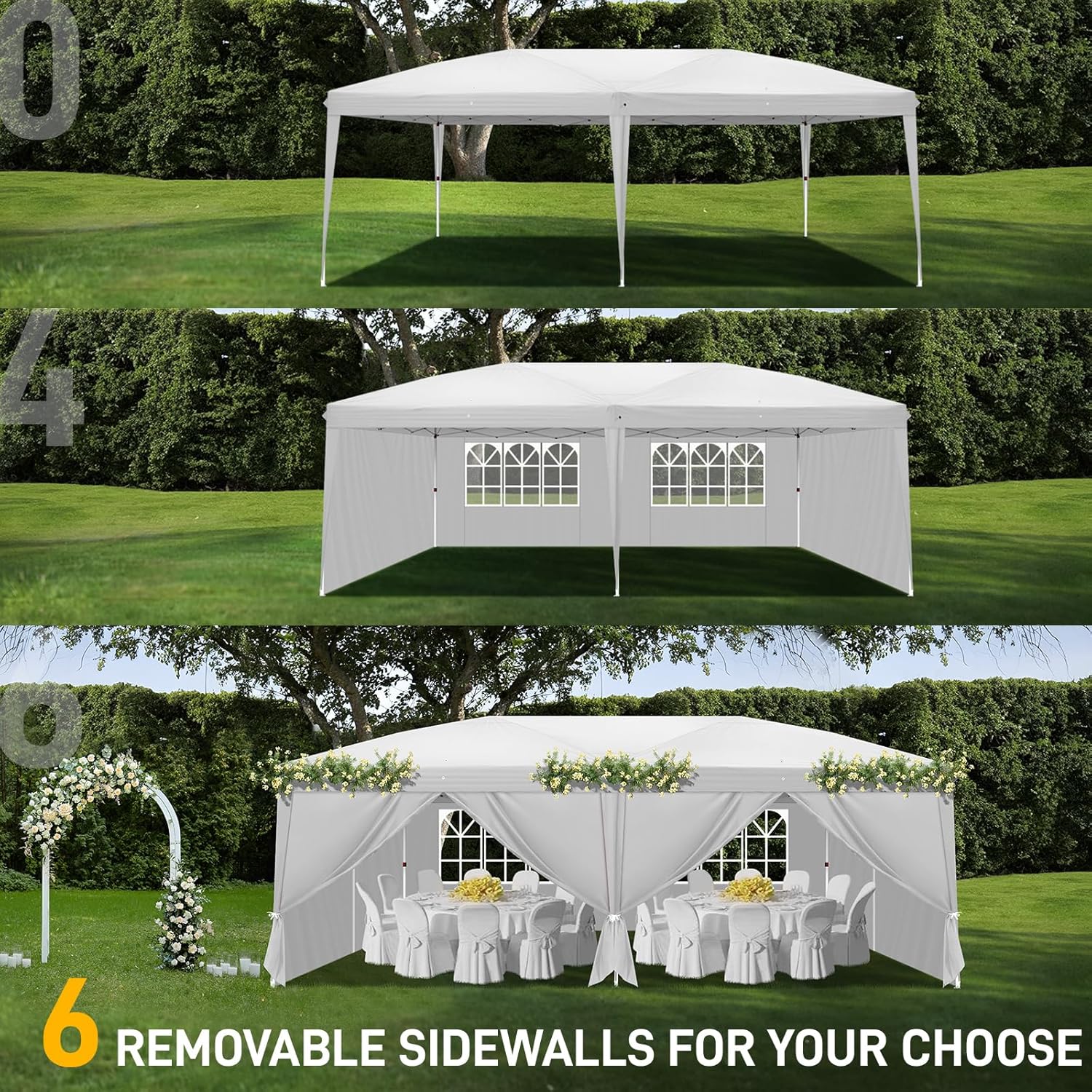 - Amplio uso: esta tienda de campaña de fiesta es perfecta para uso comercial o recreativo como fiestas, bodas, graduaciones, mercadillos de pulgas, pequeñas empresas, eventos al aire última intervensión, patio trasero, camping, picnics, eventos deportivos, mesas de artes y manualidades y mucho más