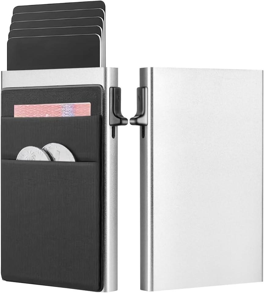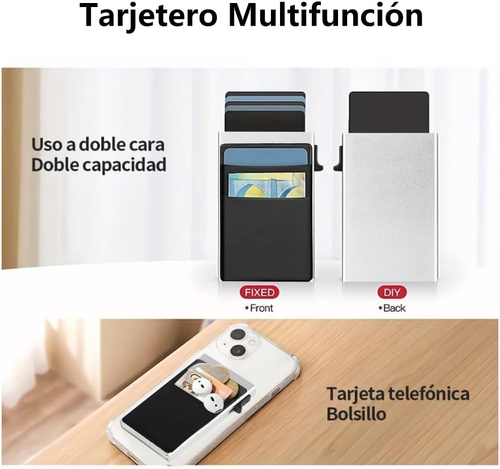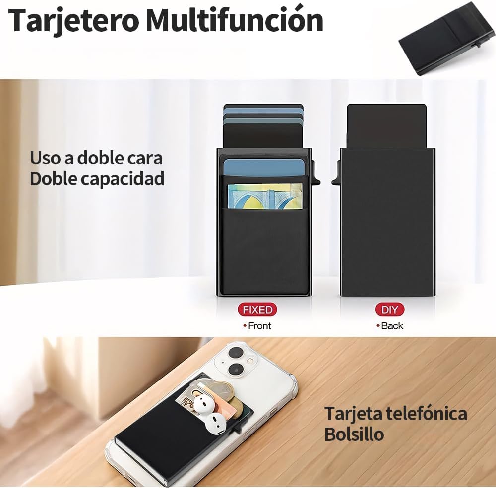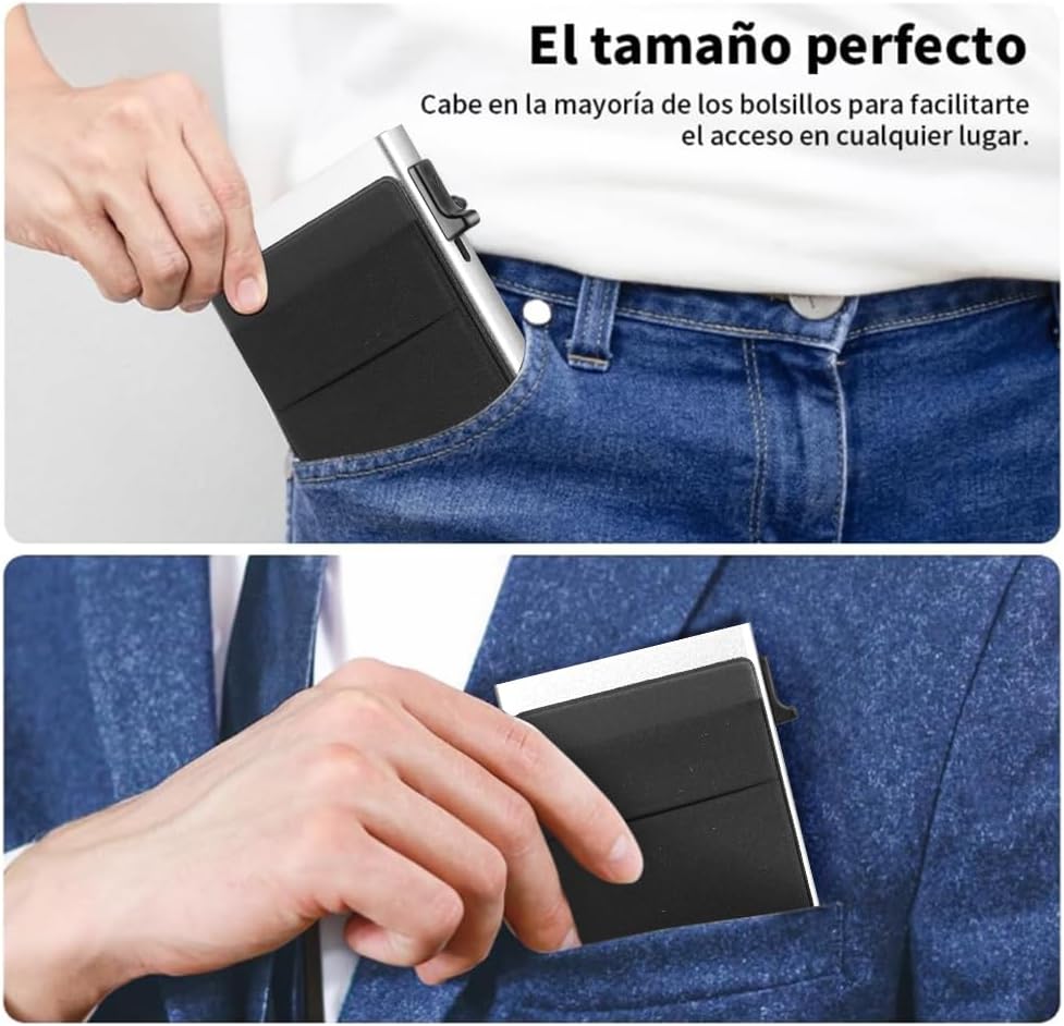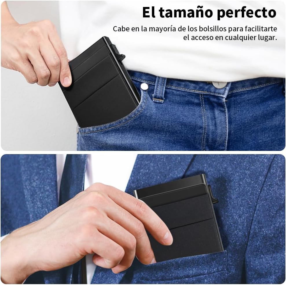 - 【Compacto, Eficiente y de Gran Capacidad】vantisan billetera automática de tarjetas emergentes permite extraer tarjetas con un solo clic, eliminando métodos de búsqueda engorrosos. Fabricada en aleación de aluminio 6061-T6 de grado aeronáutico, es duradera y elegante. Su compartimento principal almacena hasta 6 tarjetas, con 2 ranuras adicionales para 2-3 tarjetas y algunos billetes, ajustándose al grosor de las tarjetas para mayor comodidad.