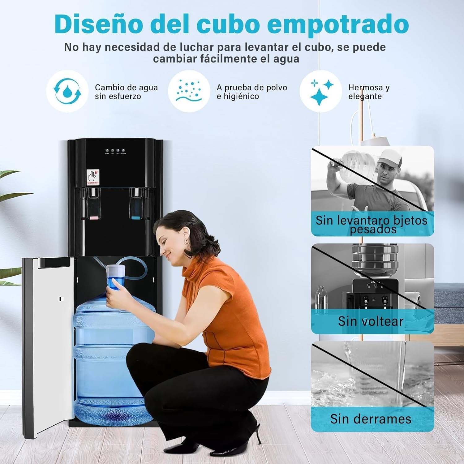 - Compacto y Fácil de Mover: Dispensador de agua garrafon oculto versátil, de primera calidad, compacto y duradero que ocupa poco espacio. Las dimensiones son: 93*32*31 cm. Hay asas a ambos lados del dispensador de agua, lo que le permite moverse. Perfecto para cualquier hogar, oficina, cocina o lugar de trabajo.
