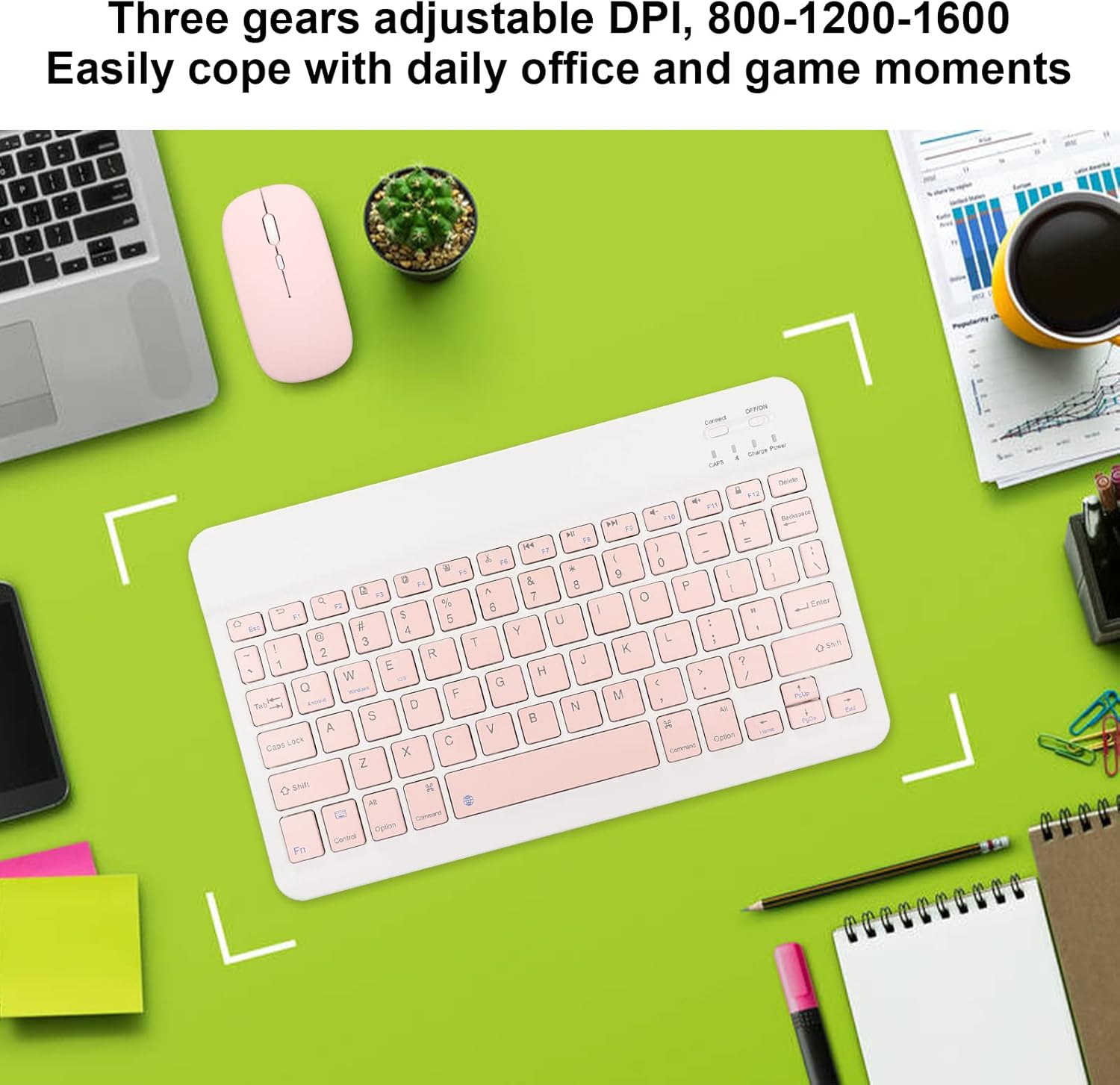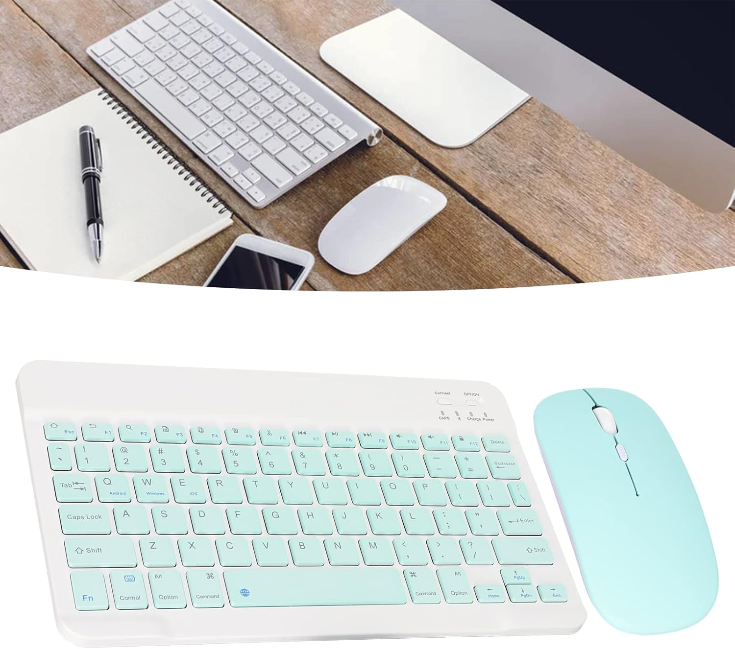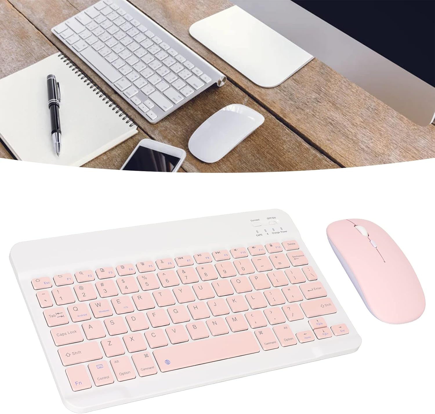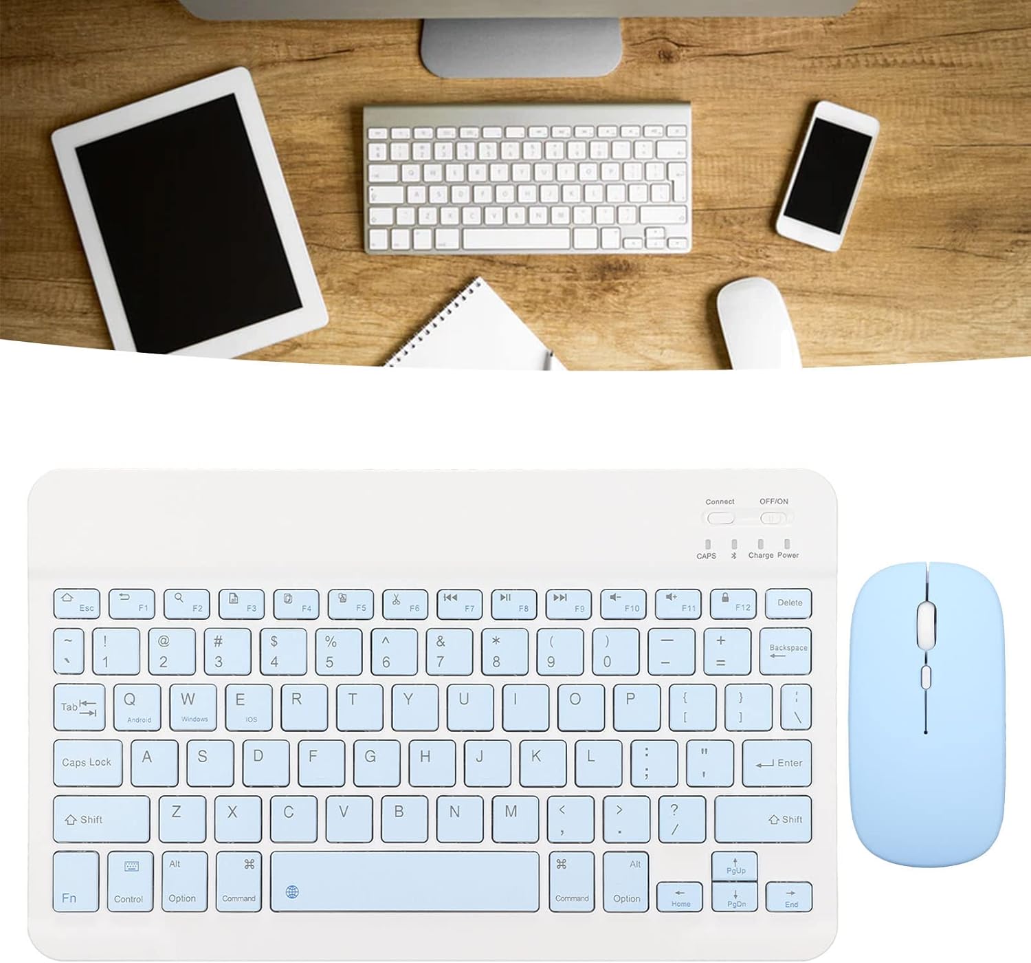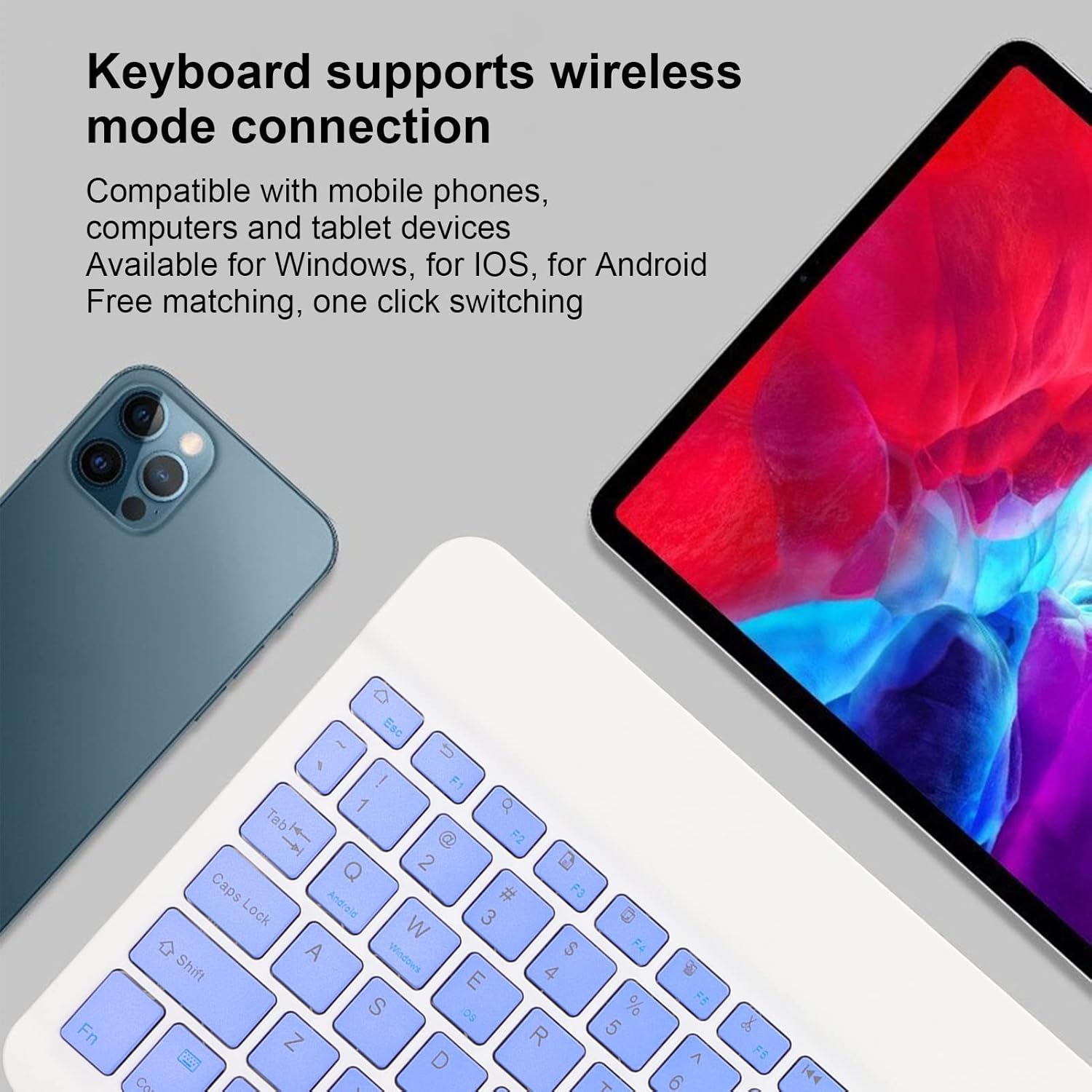 - [Compatible] El teclado inalámbrico es compatible con la conexión de modo bt, y es compatible con teléfonos móviles, computadoras y tabletas, para , para ios, para android, emparejamiento , cambio de tecla.